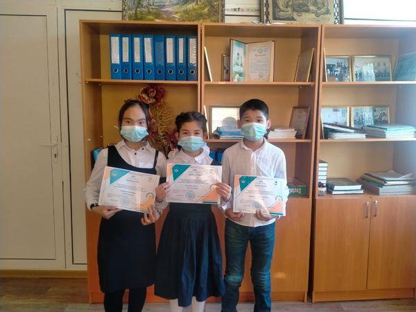 Қазақстан Республикасының Білім және Ғылым министрлігі Шымкент дарын орталығының ұйымдастыруымен жалпы білім беретін пәндер бойынша 5-6 сынып оқушыларына арналған Республикалық олимпиаданың екінші(аудандық) кезеңінің жеңімпаздары 5"А"сынып оқушысы Мырзабек Айдана қазақ тілі пәнінен жүлделі lll орын ; жетекшісі - Байтимова Ж.Р,6"А" сынып оқушысы Жұмағали Жанайым қазақ тілі пәнінен lll орын ; жетекшісі - Қазыбекова А.Ж , 6 "Ә" сынып оқушысы Абдураймов Мақсымқожа ; жетекшісі - Серикбаева Г тарих пәнінен жүлделі lll орындарға
