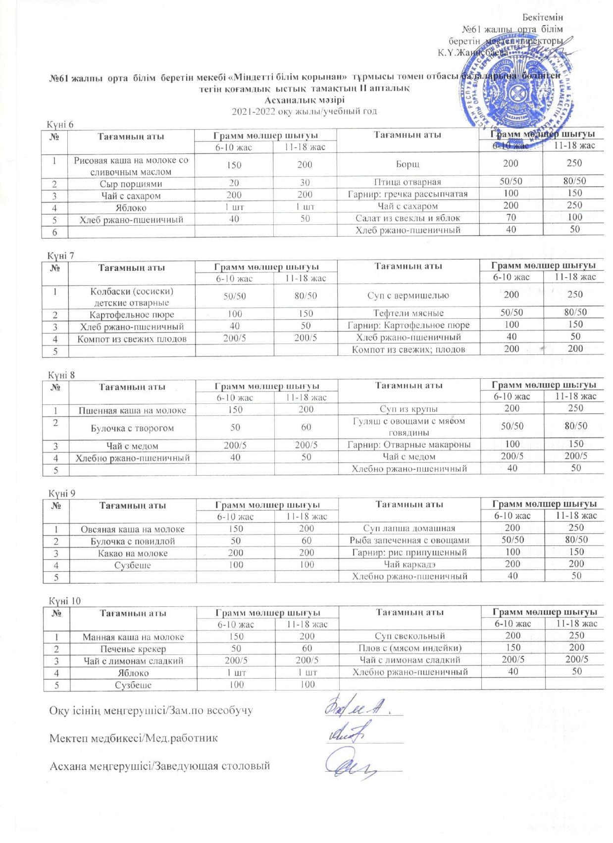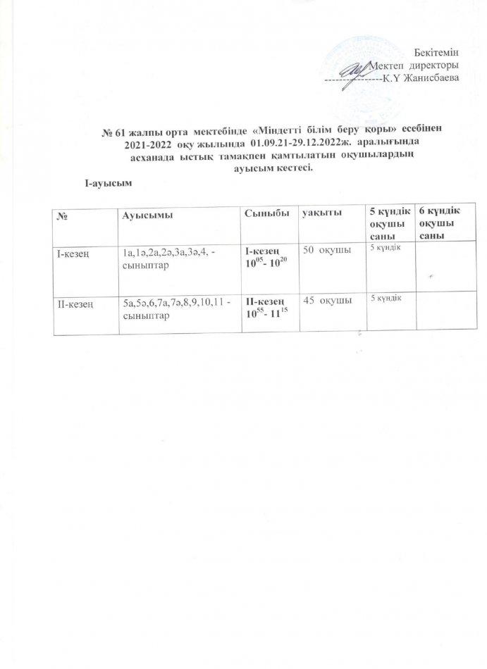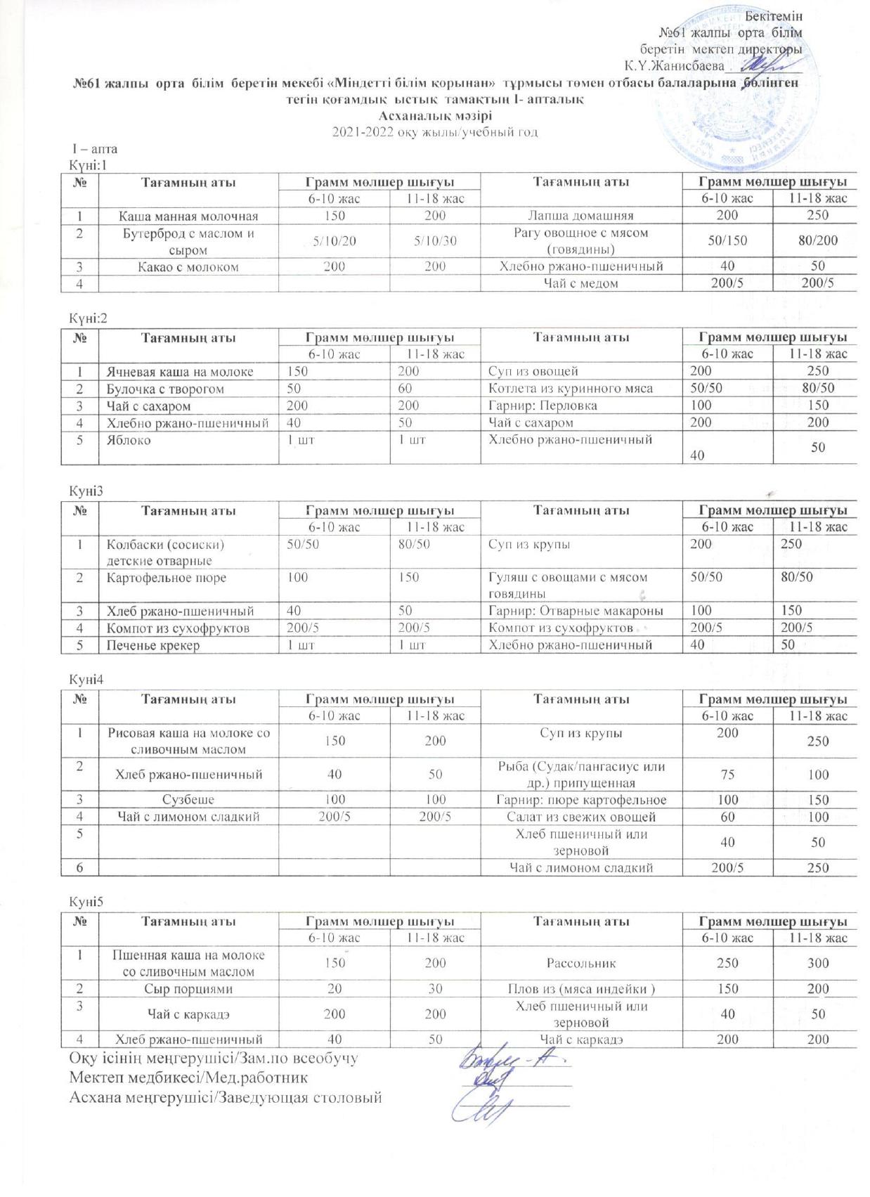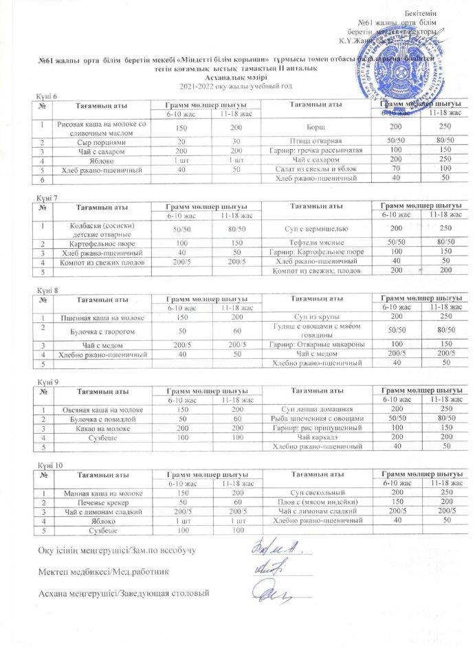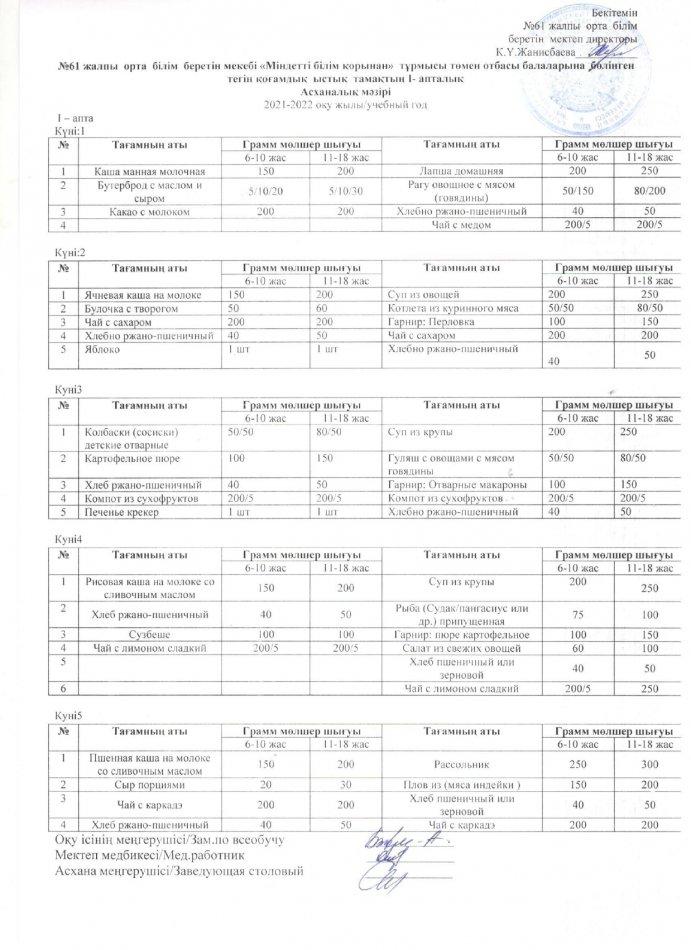 ыстық тамақ І-жарты жылдық 2021-2022 жыл » «N61 жалпы орта білім беретін мектеп» КММ
