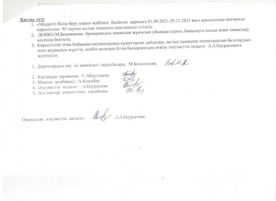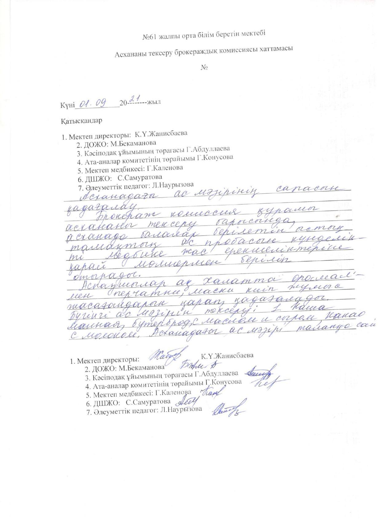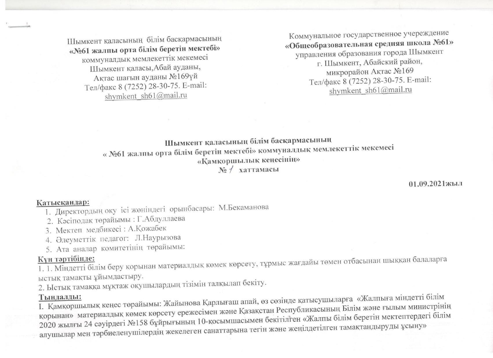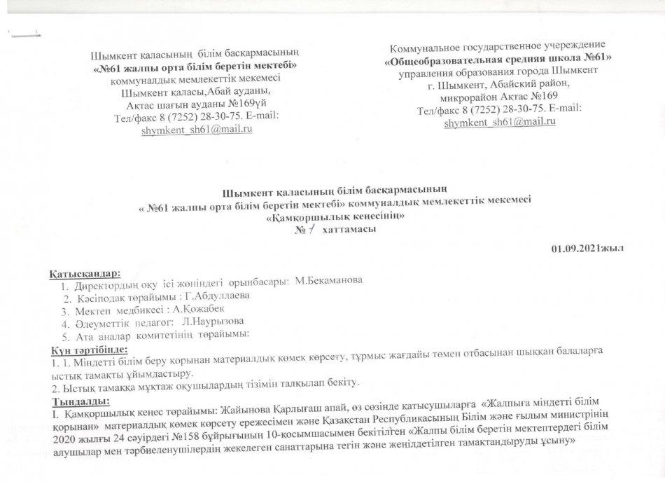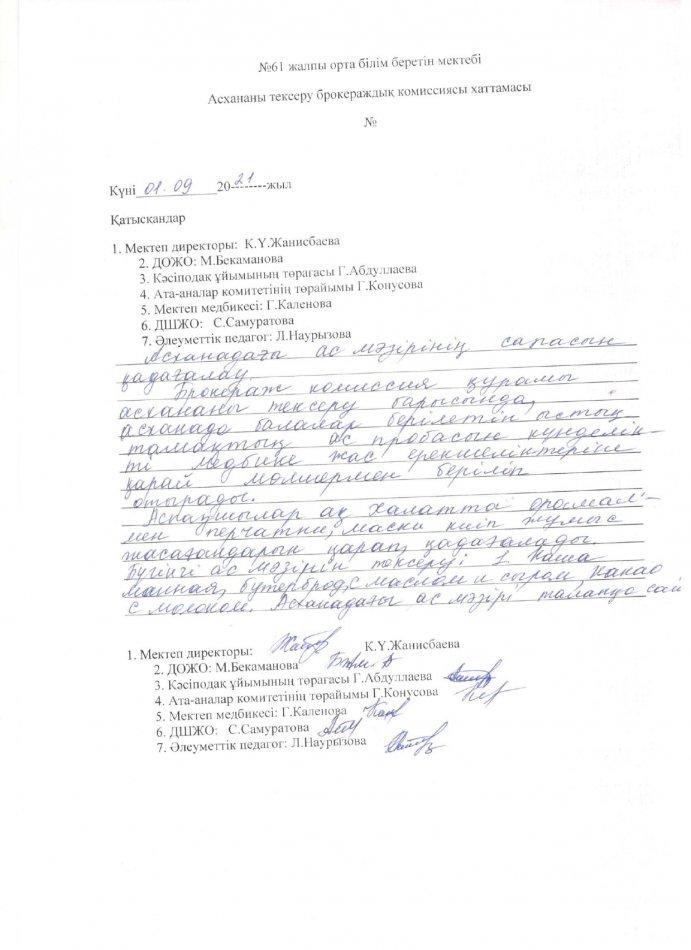ыстық тамақ І-жарты жылдық 2021-2022 жыл » «N61 жалпы орта білім беретін мектеп» КММ