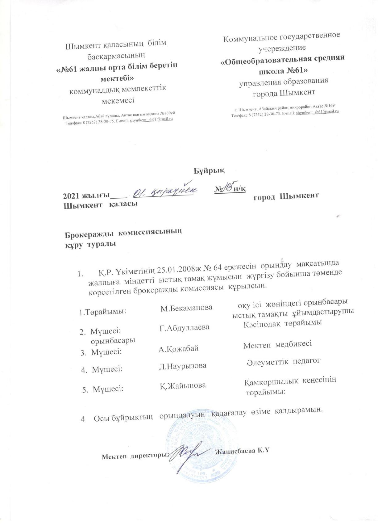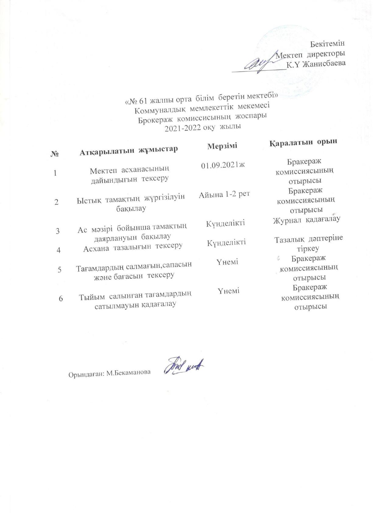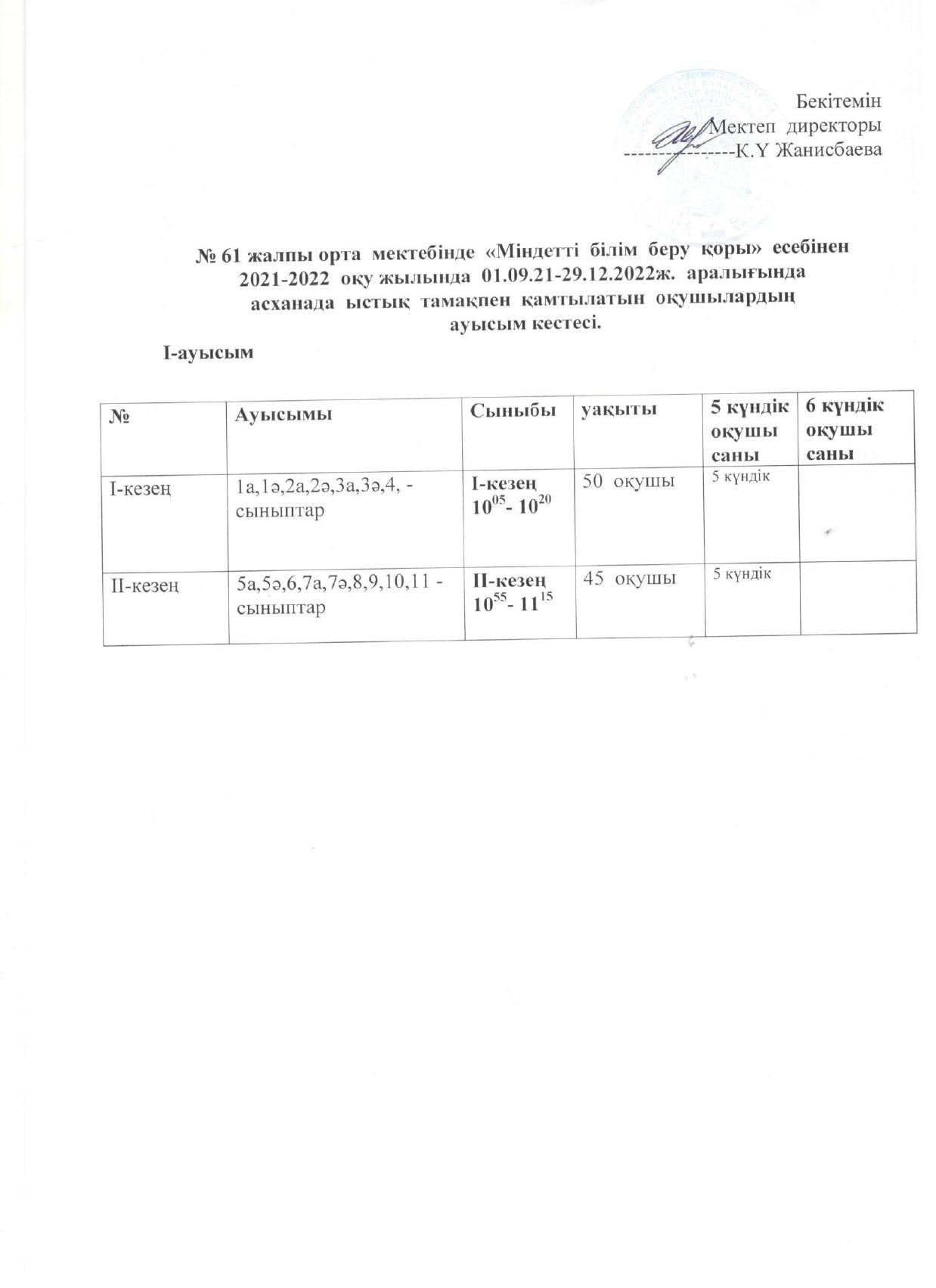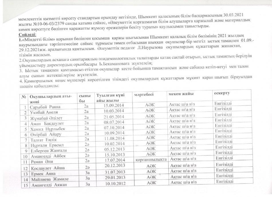 ыстық тамақ І-жарты жылдық 2021-2022 жыл » «N61 жалпы орта білім беретін мектеп» КММ