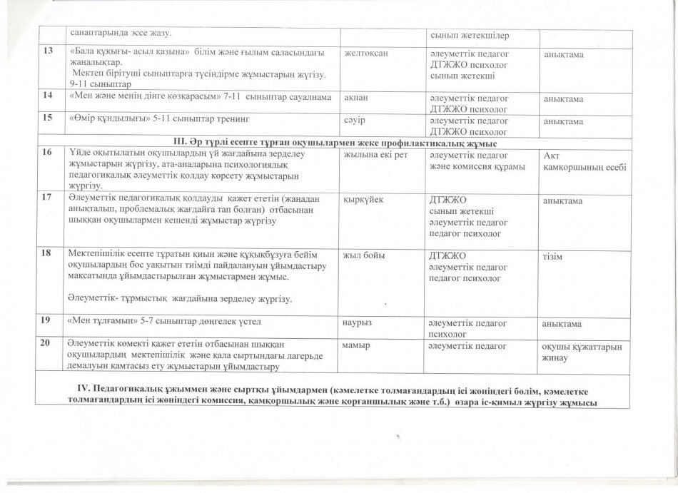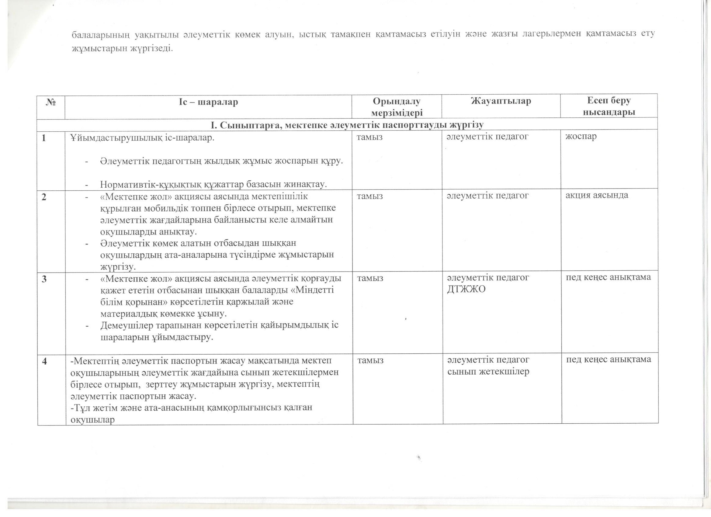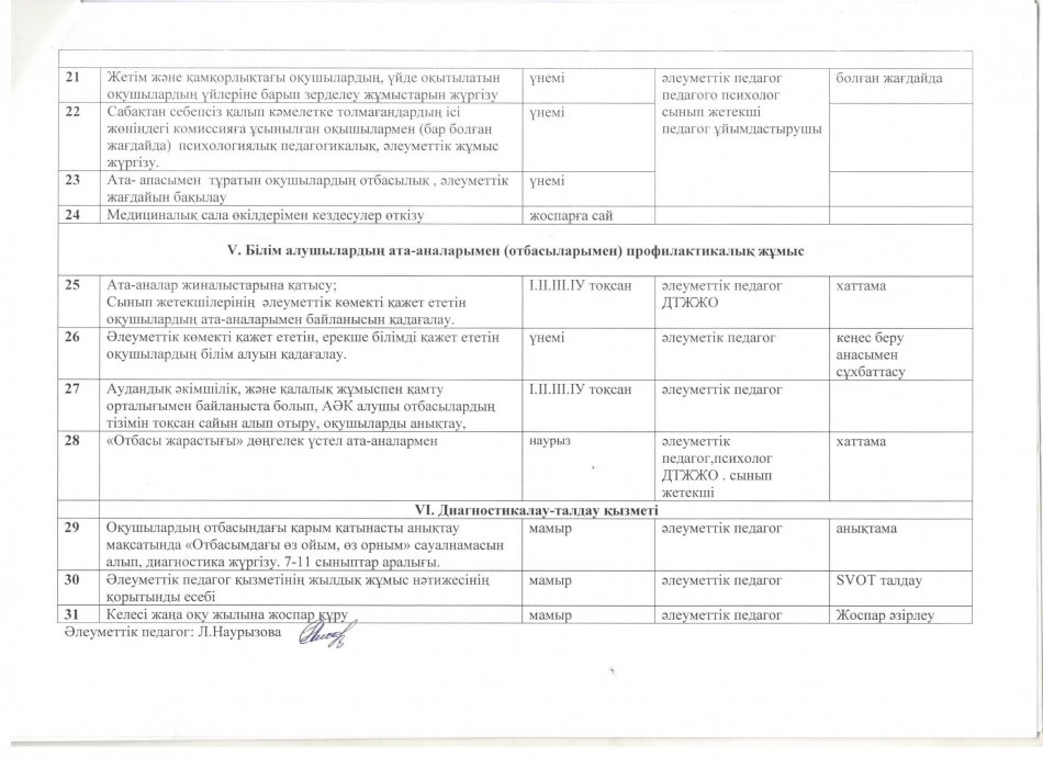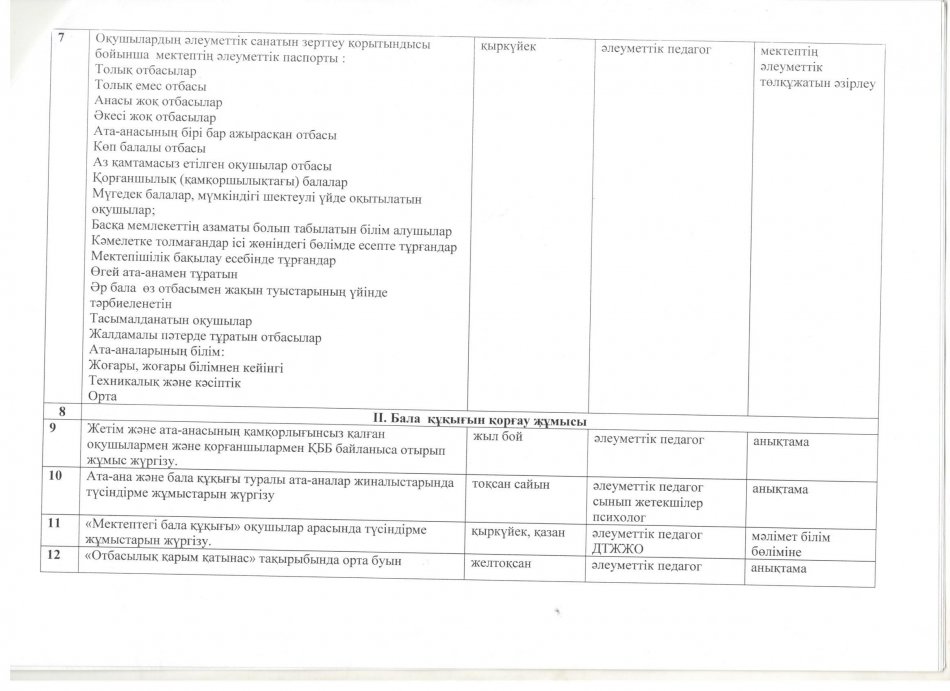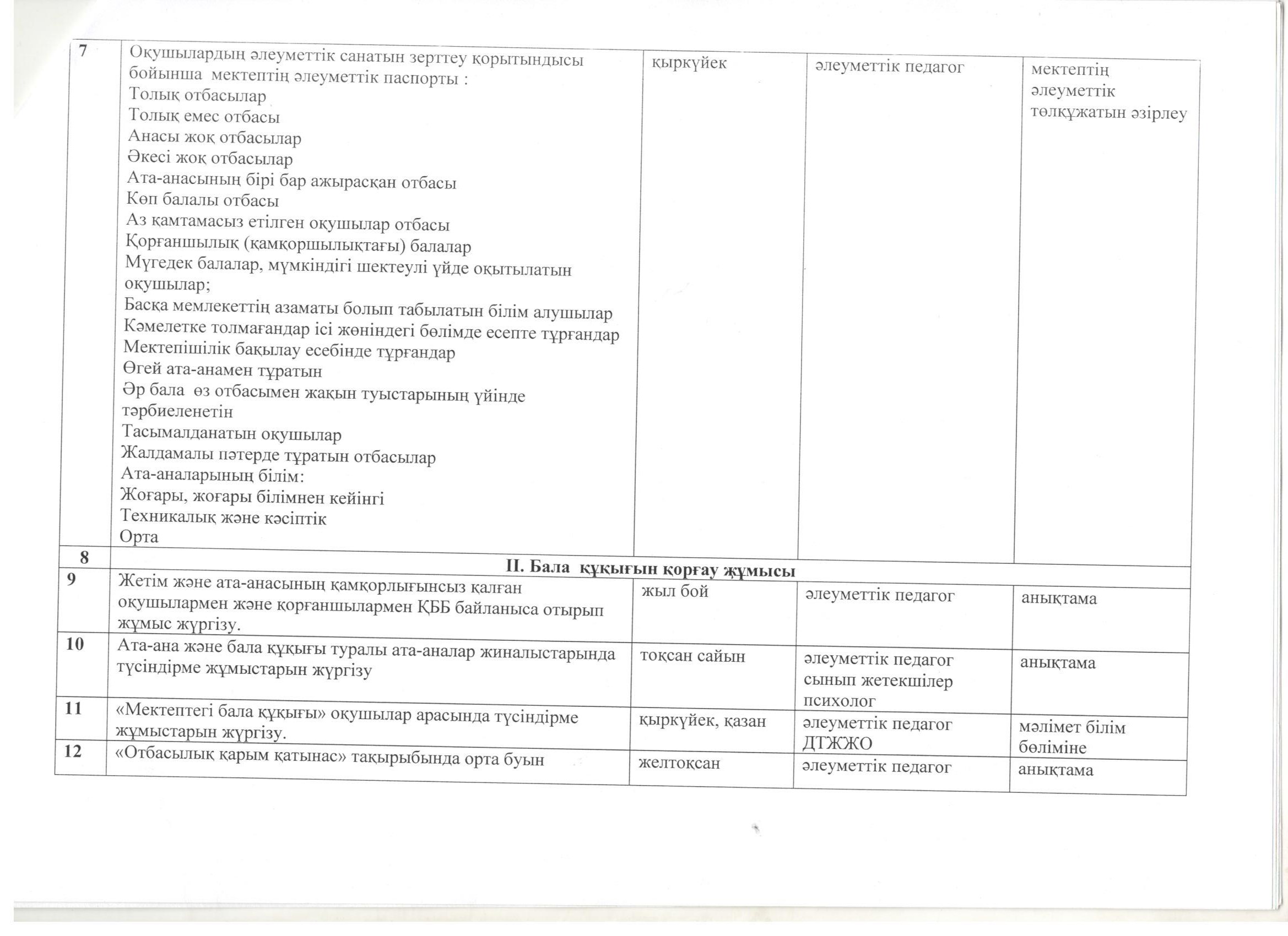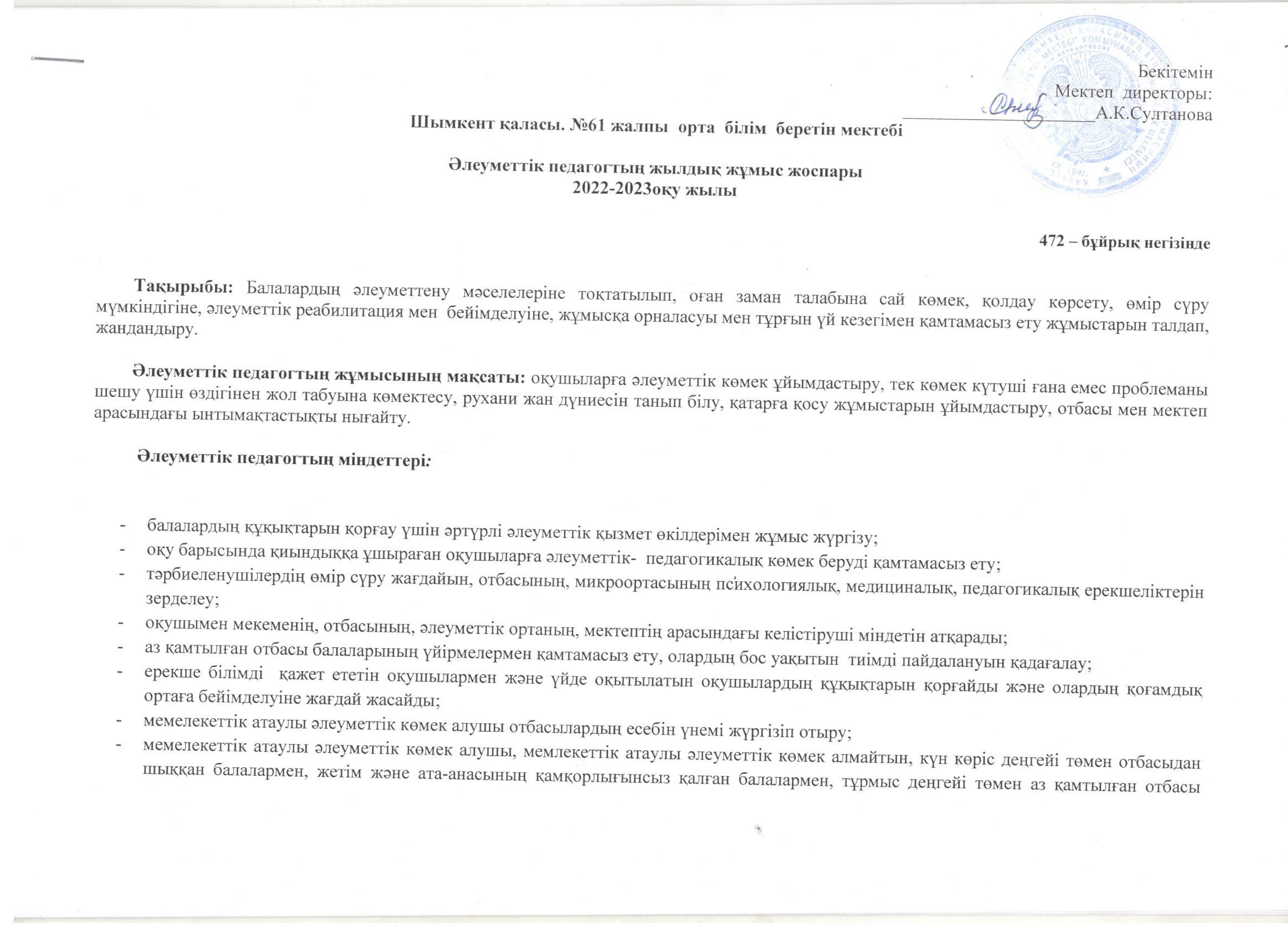 Әлеуметтік педагогтың жылдық жұмыс жоспары » «N61 жалпы орта білім беретін мектеп» КММ