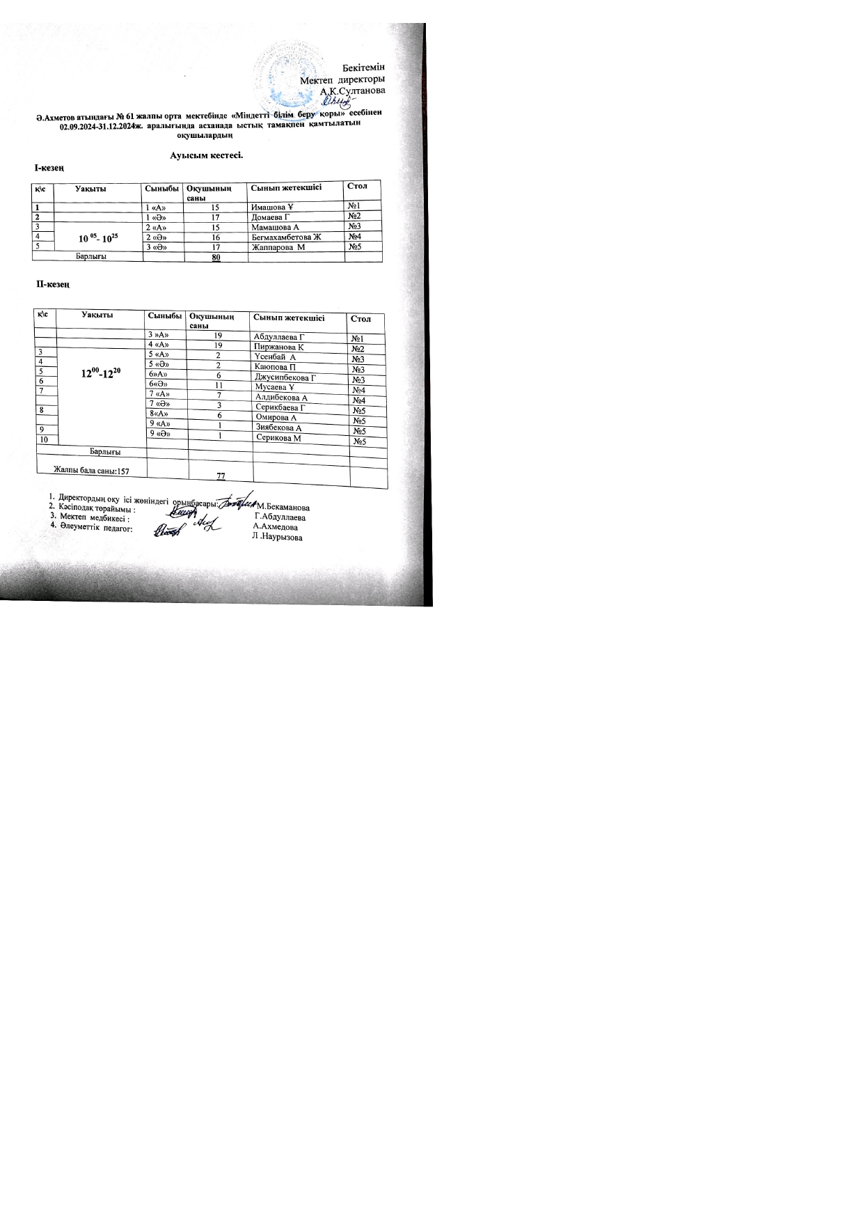 Оқушылардың тамақтану АУЫСЫМ КЕСТЕСІ » «N61 жалпы орта білім беретін мектеп» КММ