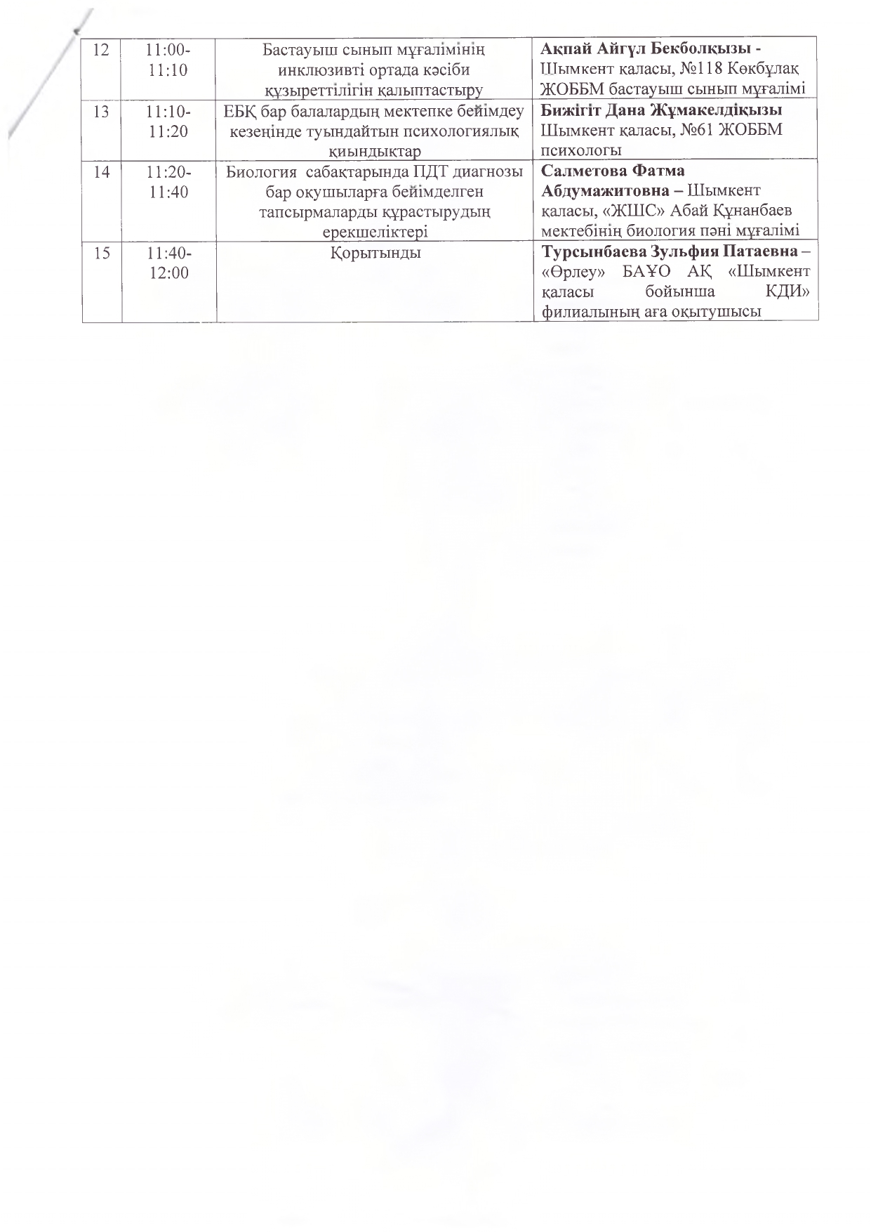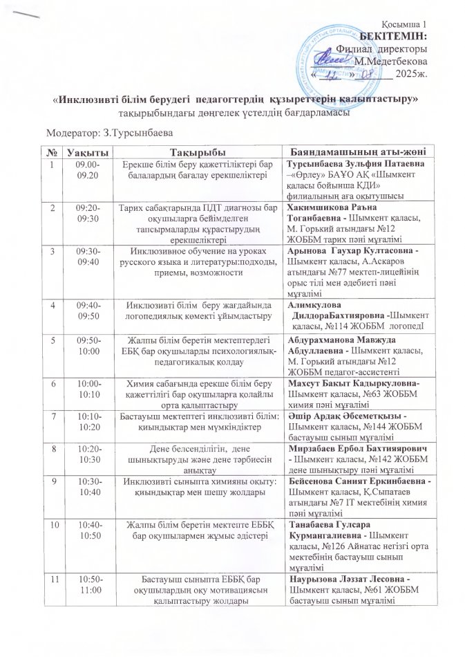 Бағдарлама дөңгелек үстел » «N61 жалпы орта білім беретін мектеп» КММ
