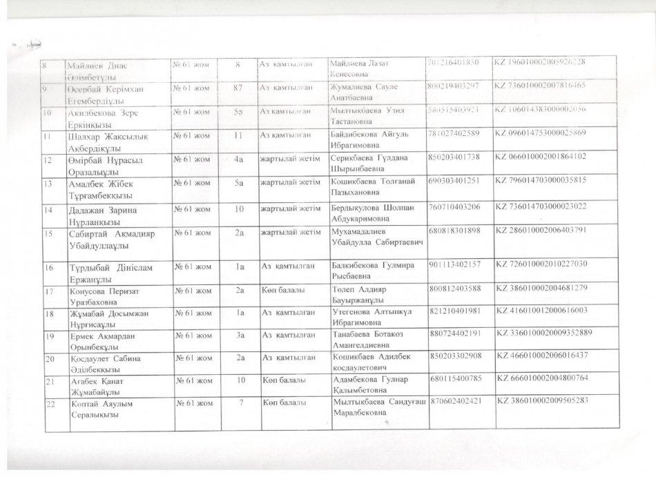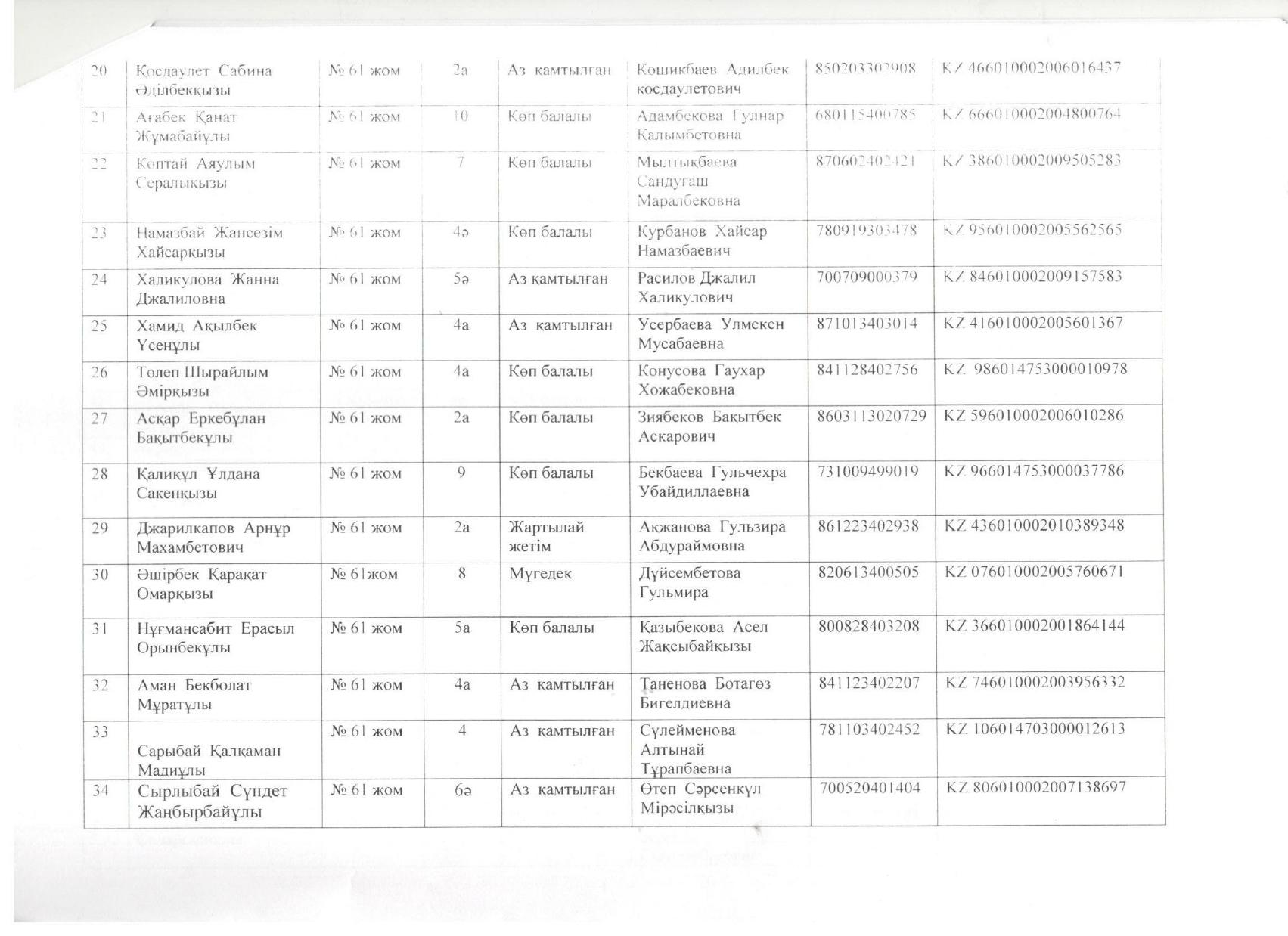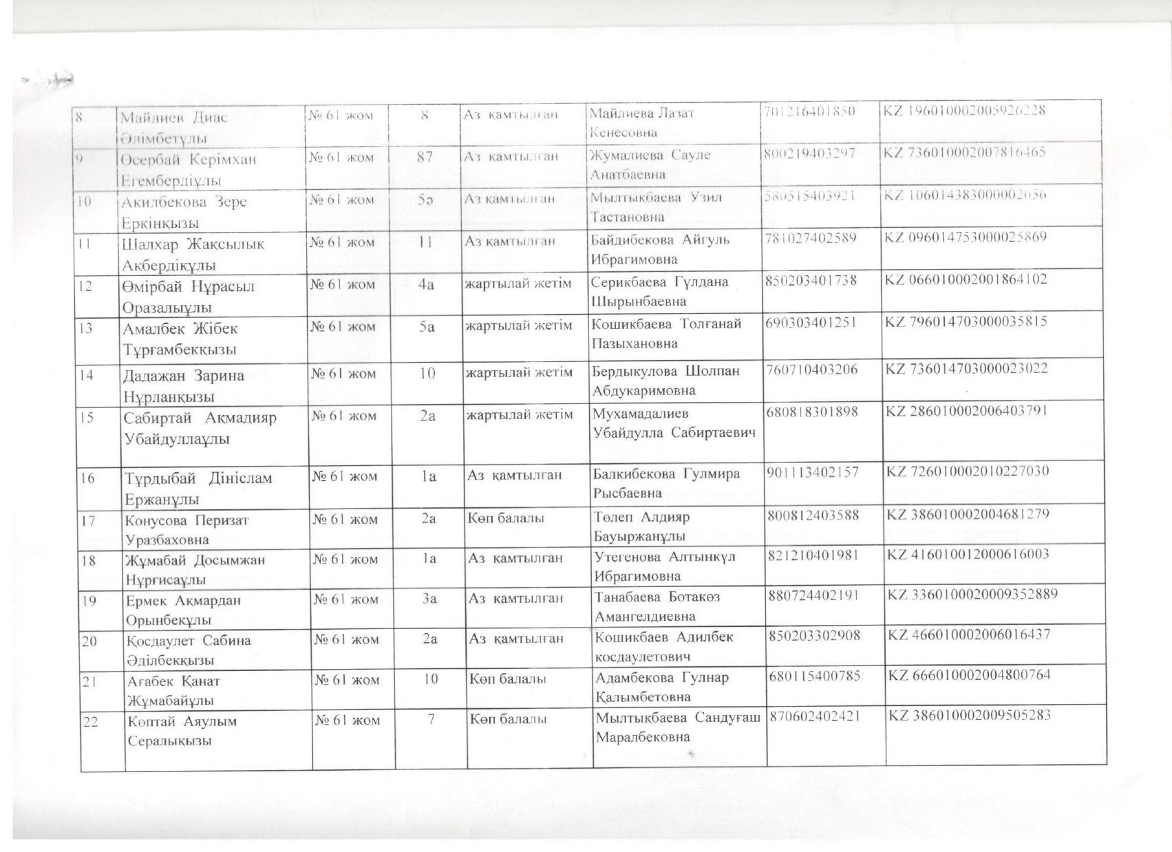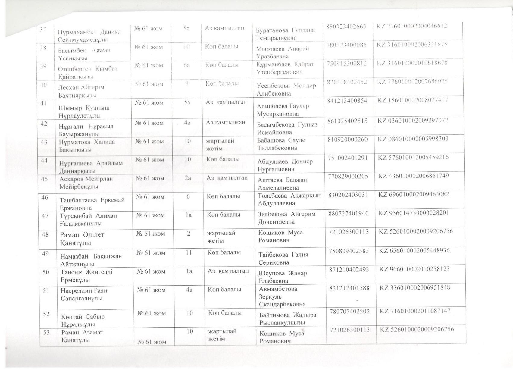 Мектепке жол Қаржылай көмек 2019-2020 оқу жылы » «N61 жалпы орта білім беретін мектеп» КММ