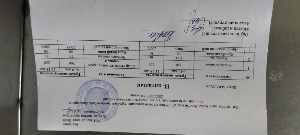 Оқушылардың ас мәзірінен фото есеп » «N61 жалпы орта білім беретін мектеп» КММ