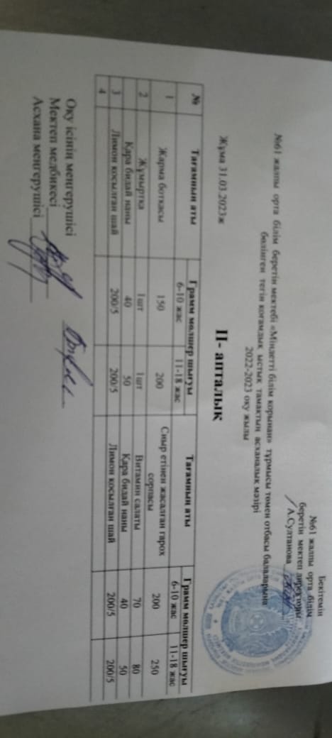 Оқушылардың ас мәзірінен фото есеп » «N61 жалпы орта білім беретін мектеп» КММ