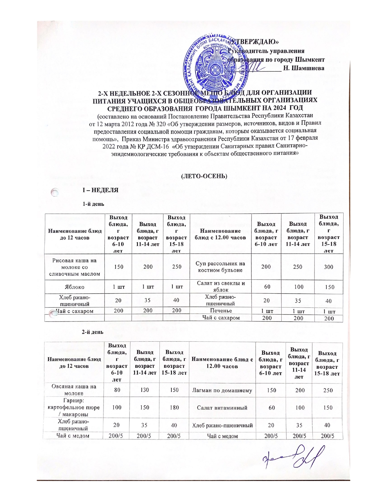 Перспективалық ас мәзірі » «N61 жалпы орта білім беретін мектеп» КММ