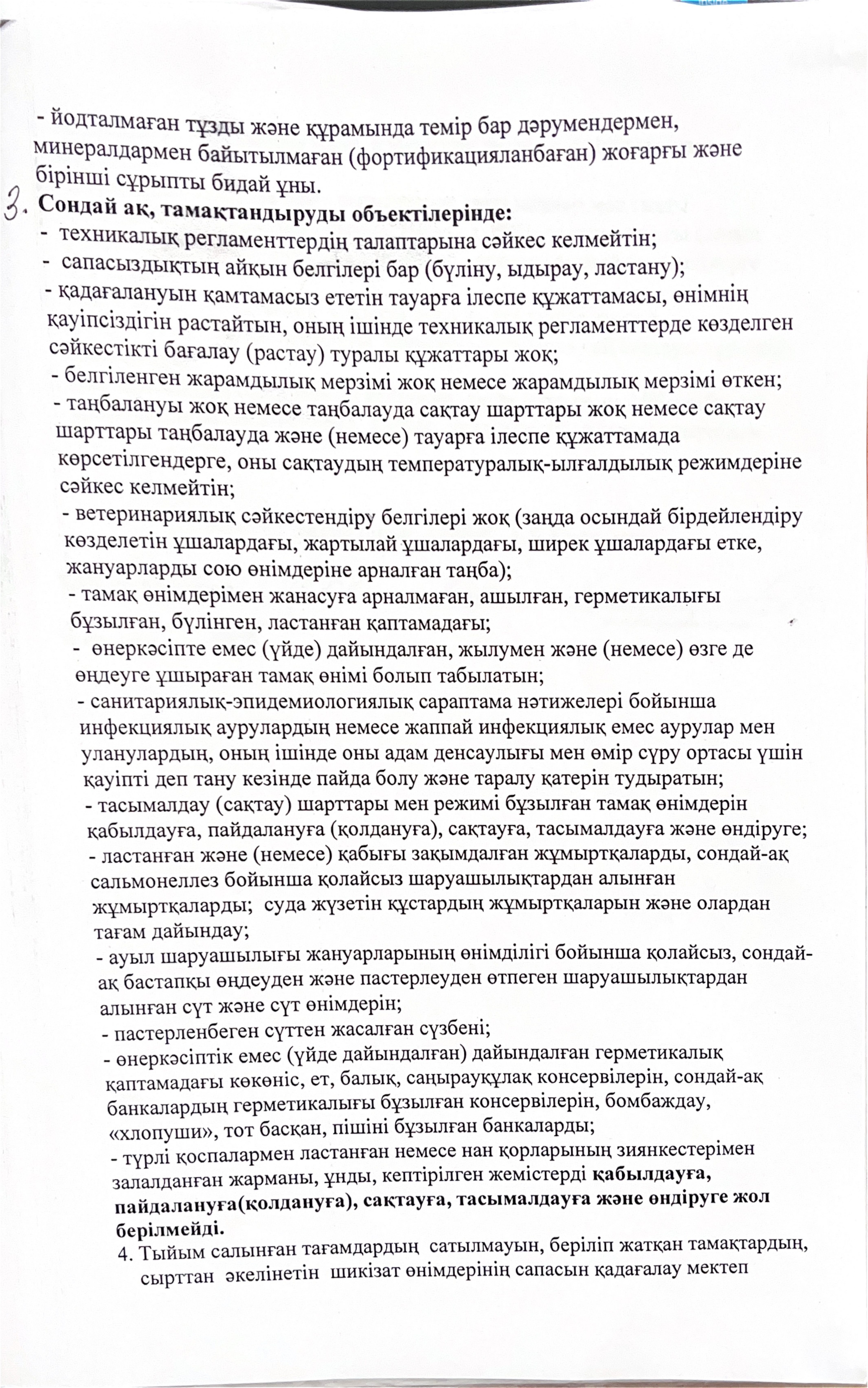 Тыйым салынған тағамдар туралы мәлімет