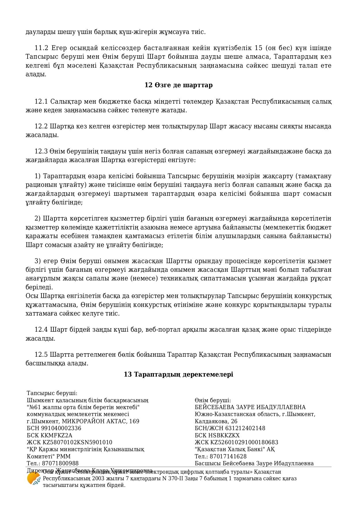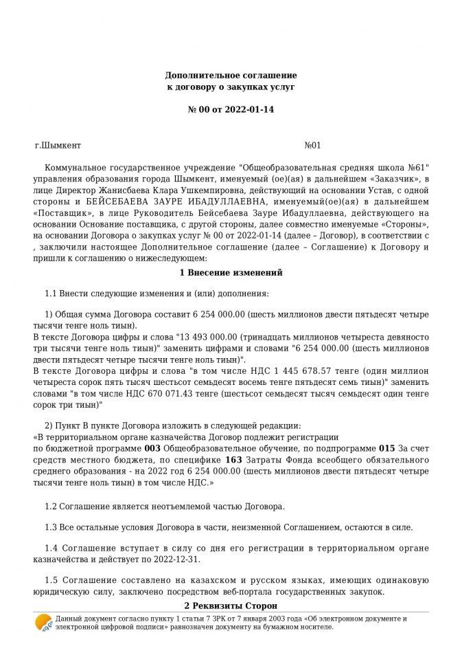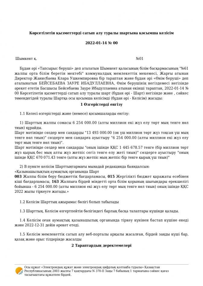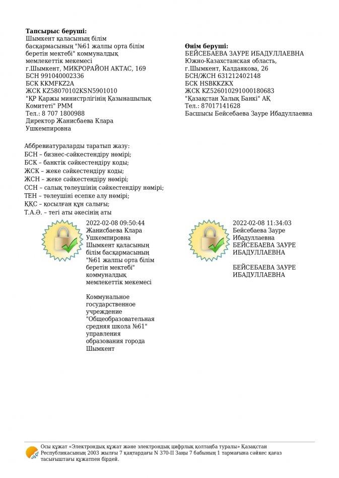 Келісім шарт » «N61 жалпы орта білім беретін мектеп» КММ