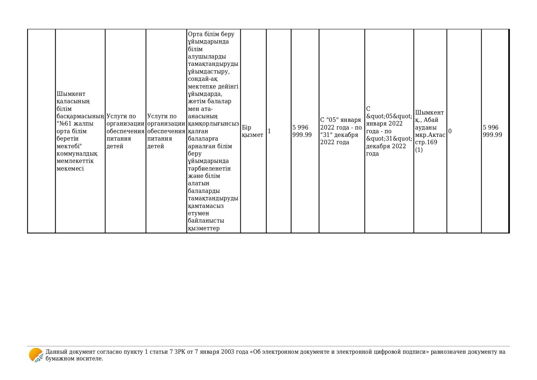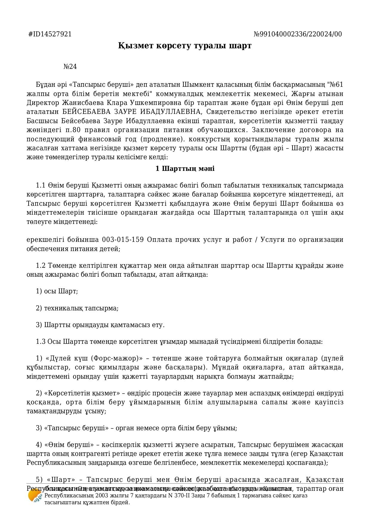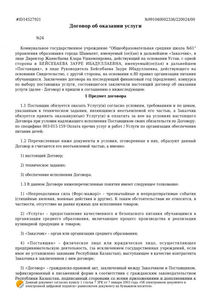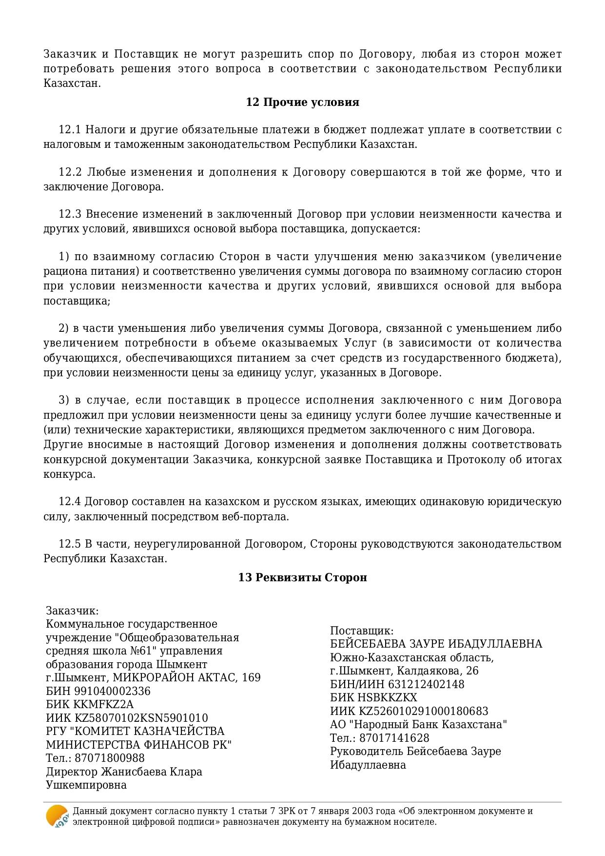 Келісім шарт » «N61 жалпы орта білім беретін мектеп» КММ