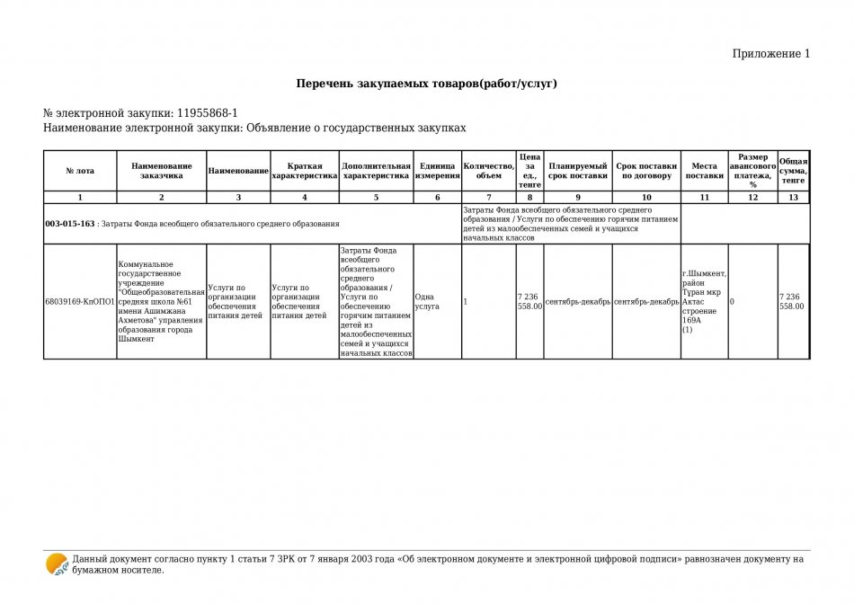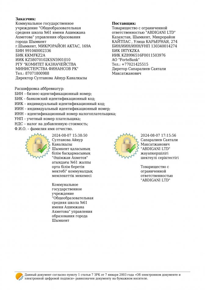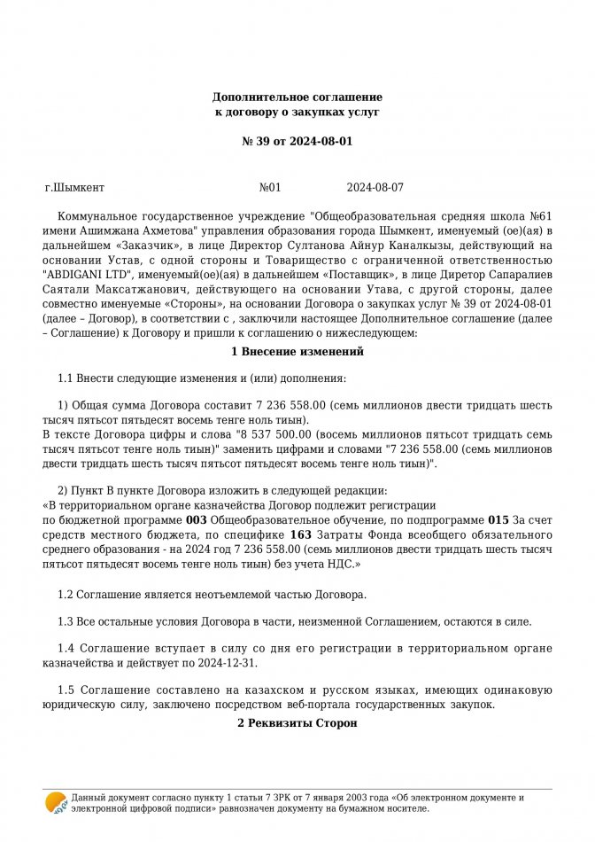 Асхана келісім шарты » «N61 жалпы орта білім беретін мектеп» КММ