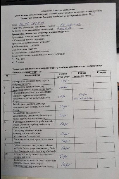 Ыстық тамақ » «N61 жалпы орта білім беретін мектеп» КММ