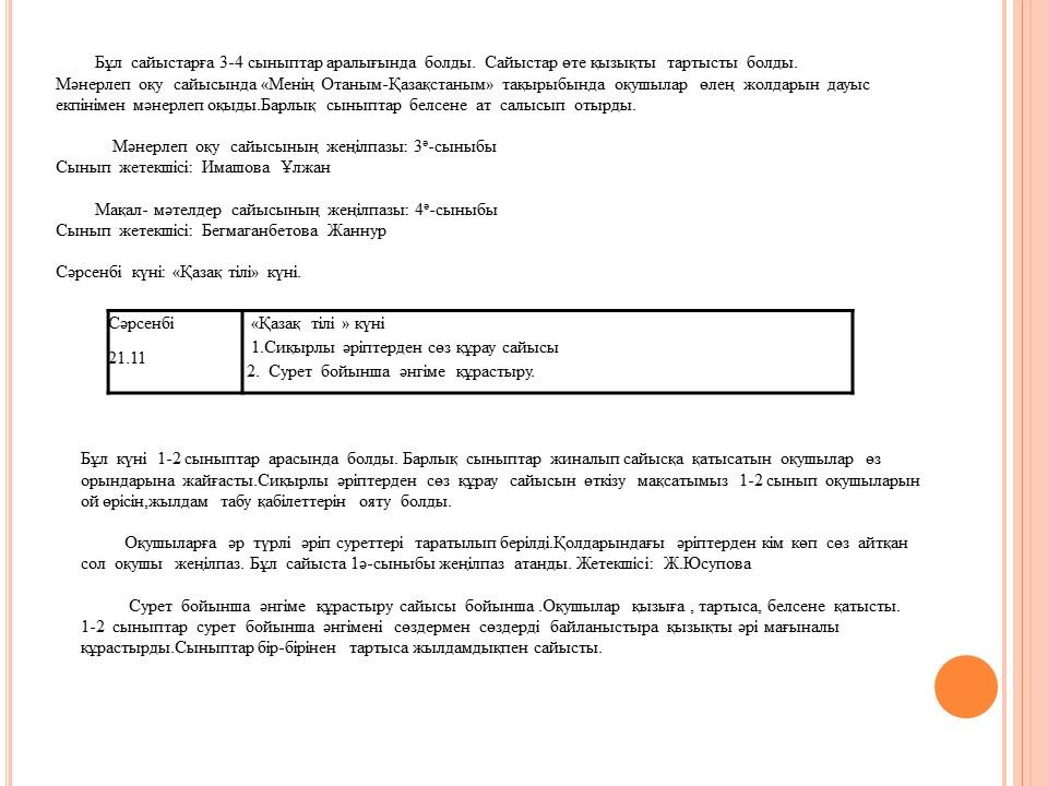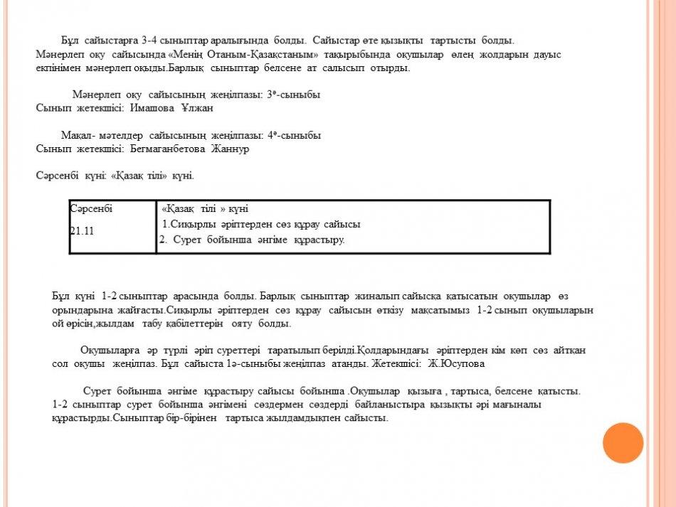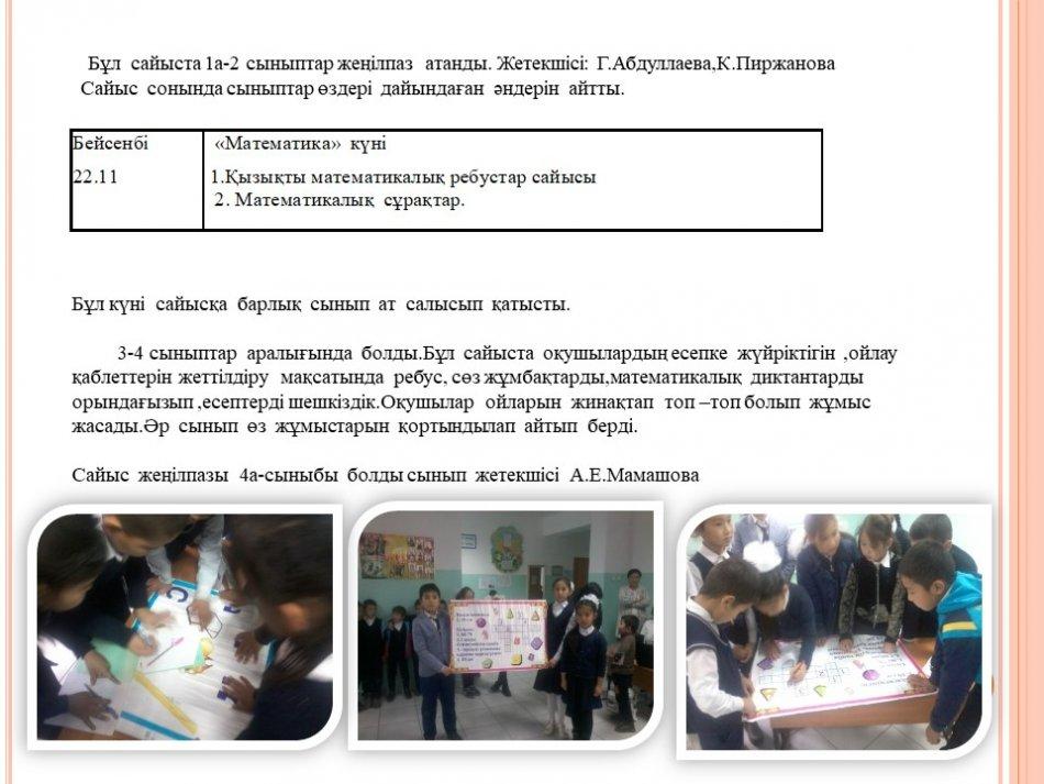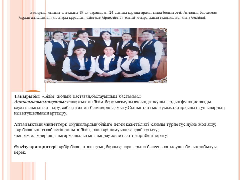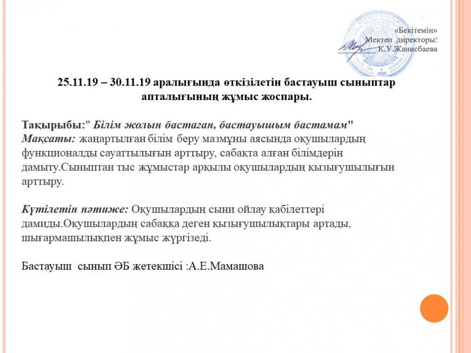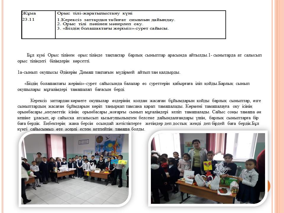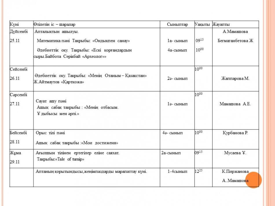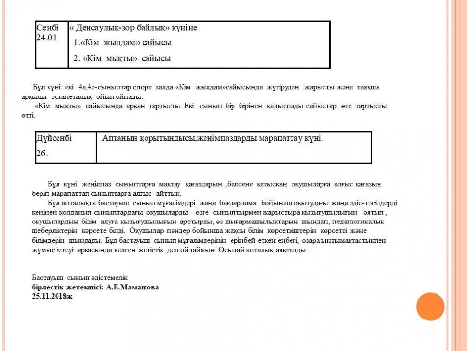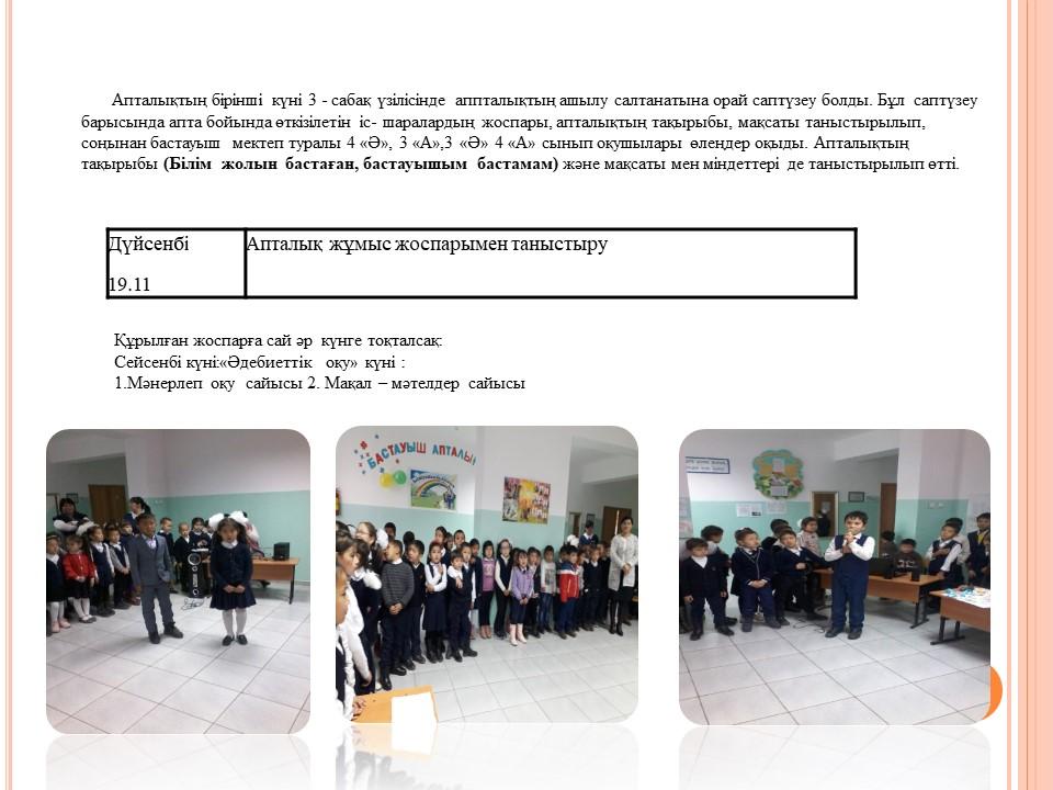 2018-2019 оқу жылы бастауыш апталық есебі » «N61 жалпы орта білім беретін мектеп» КММ