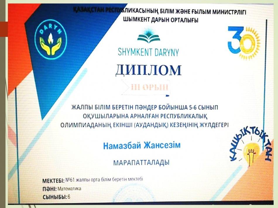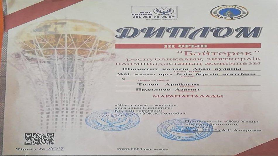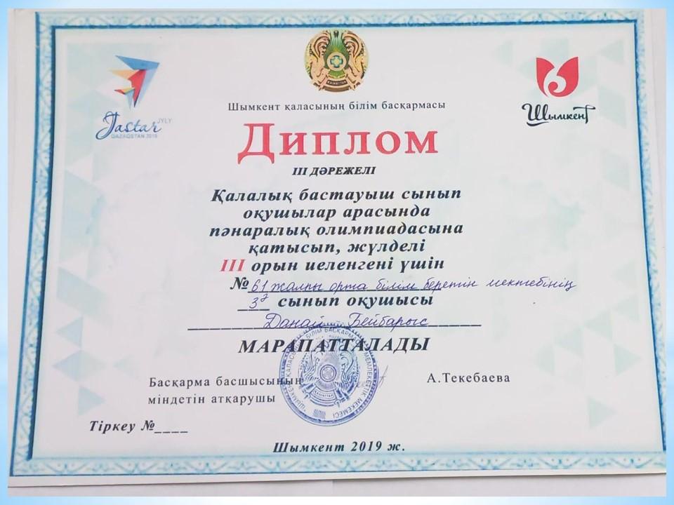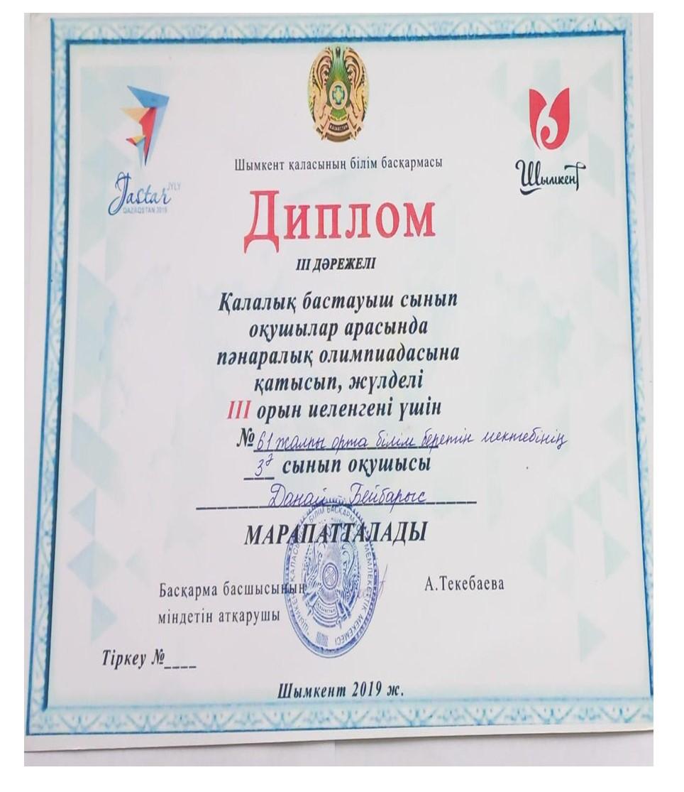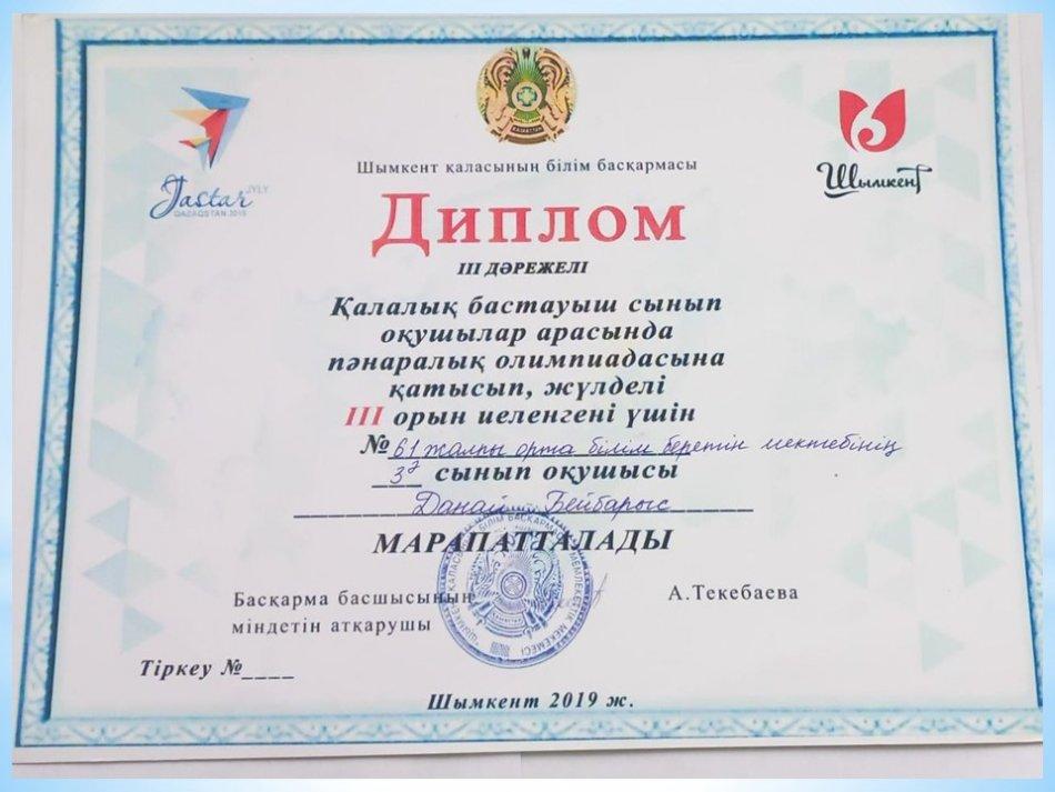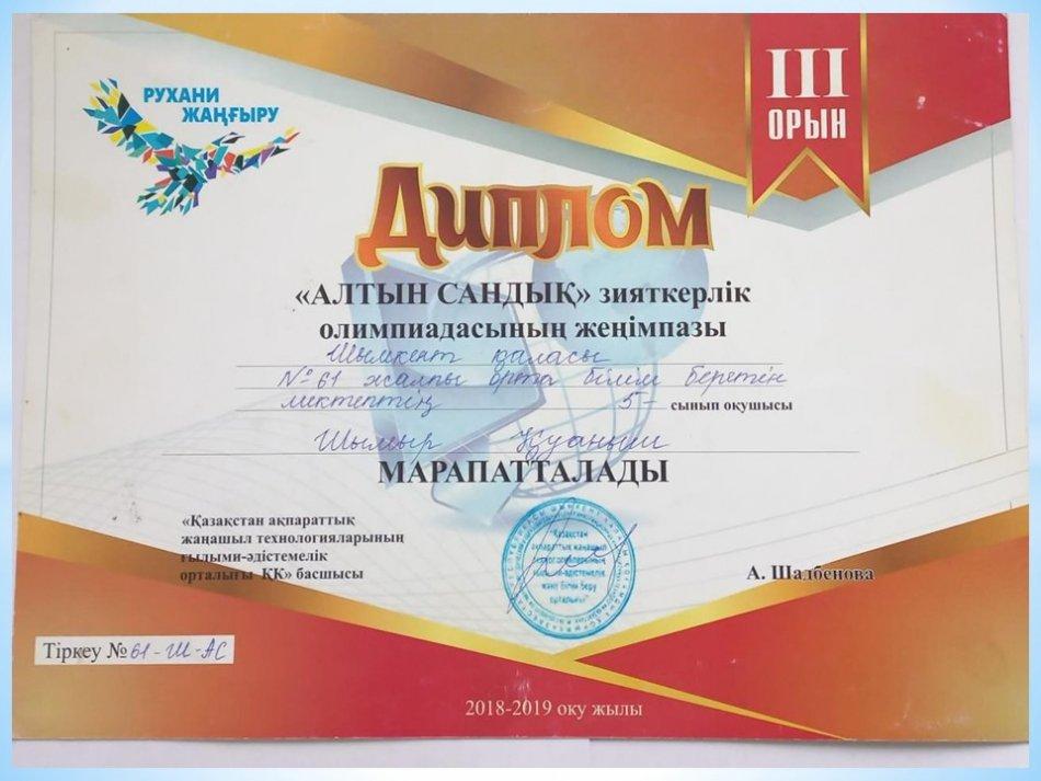 Оқушылар олимпиада нәтижелері 2017-2022 » «N61 жалпы орта білім беретін мектеп» КММ