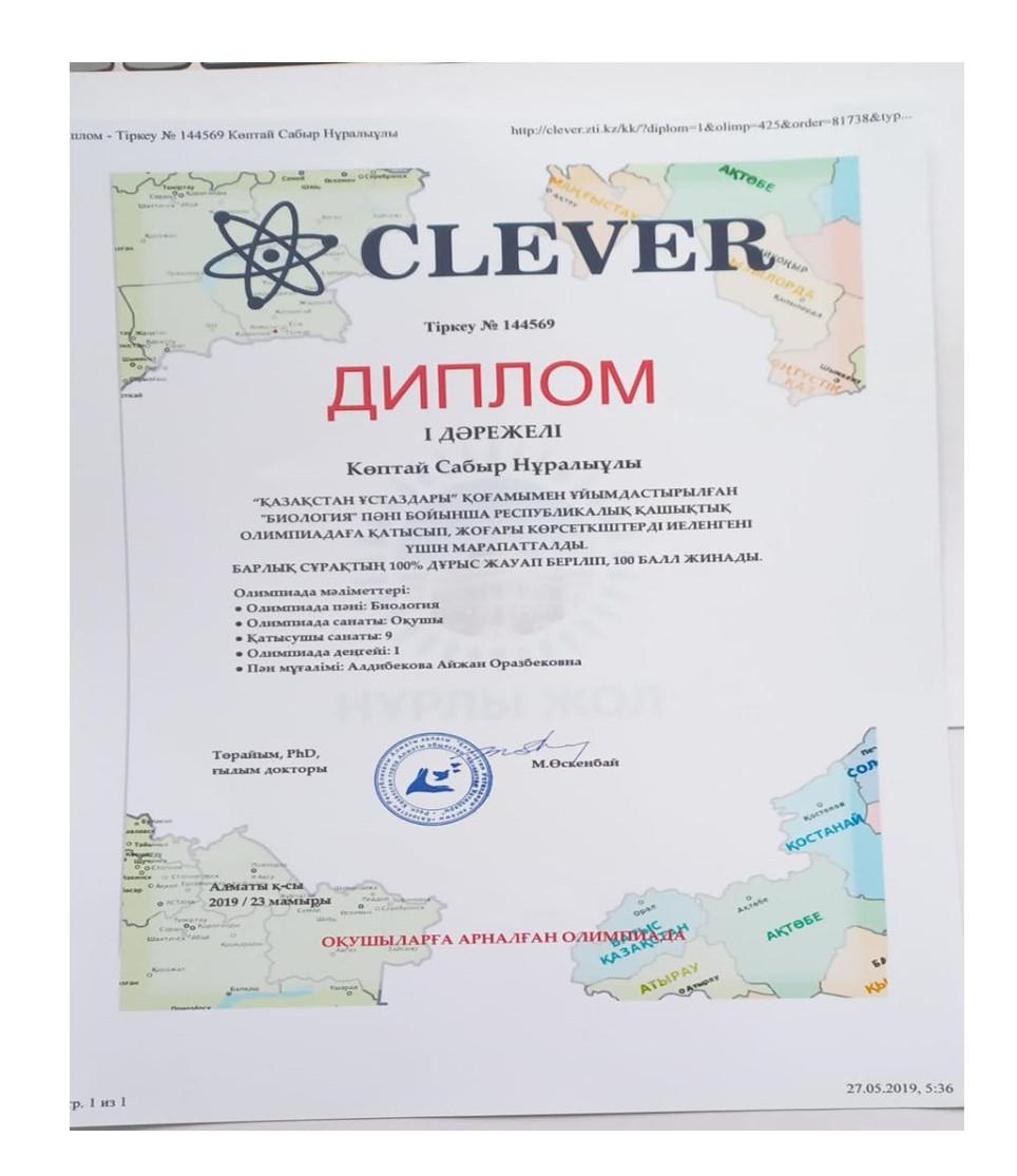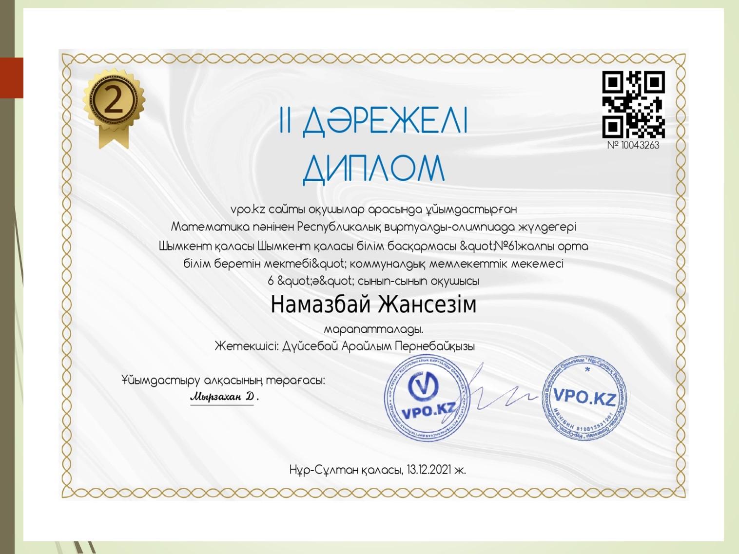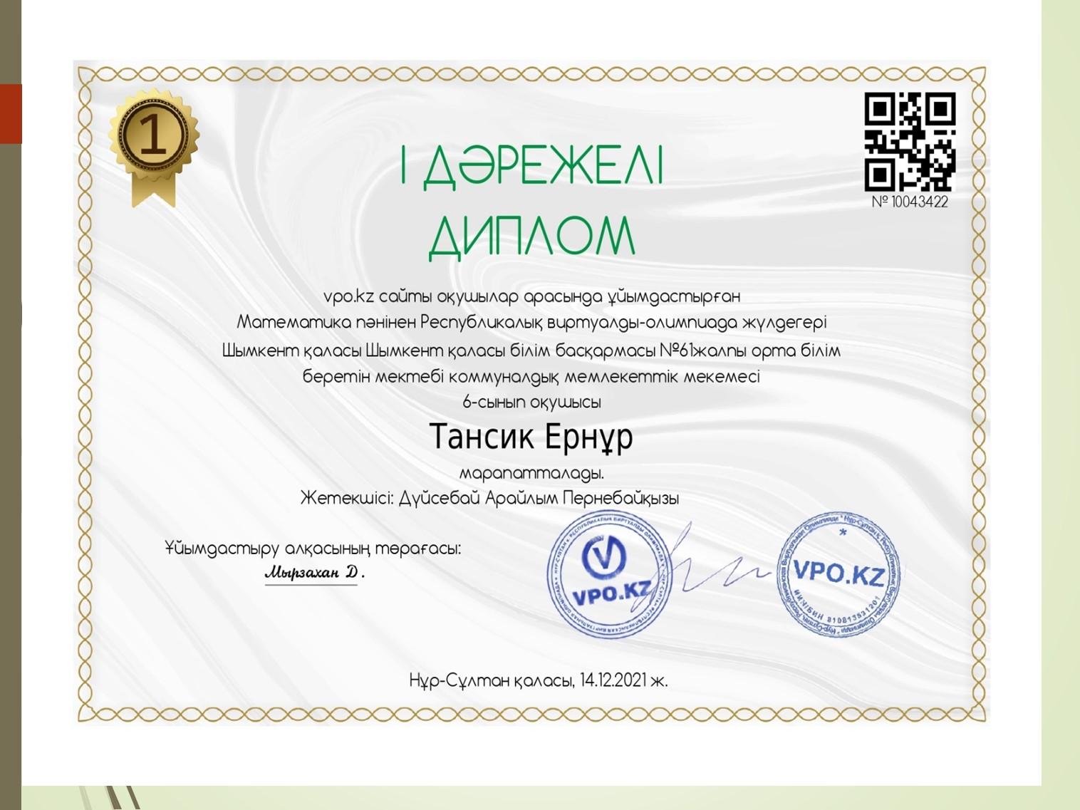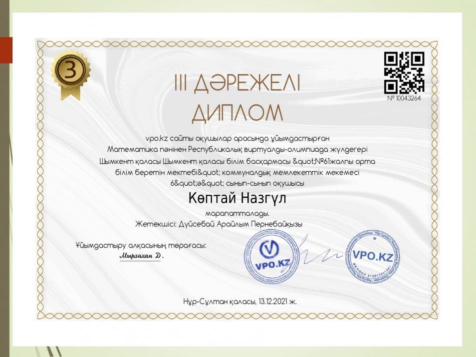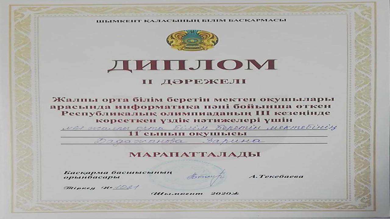 Оқушылар олимпиада нәтижелері 2017-2022 » «N61 жалпы орта білім беретін мектеп» КММ