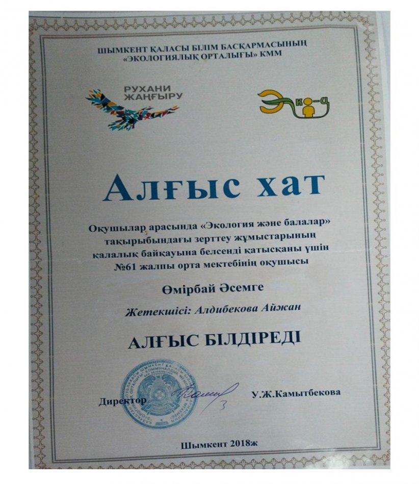 «Әшімжан Ахметов» атындағы №61 жалпы орта білім беретін мектебі»