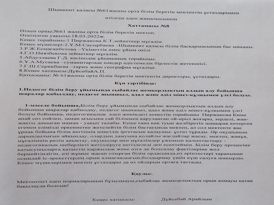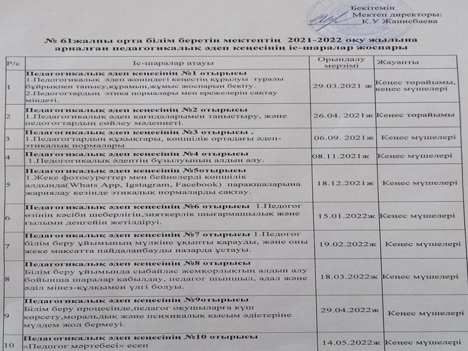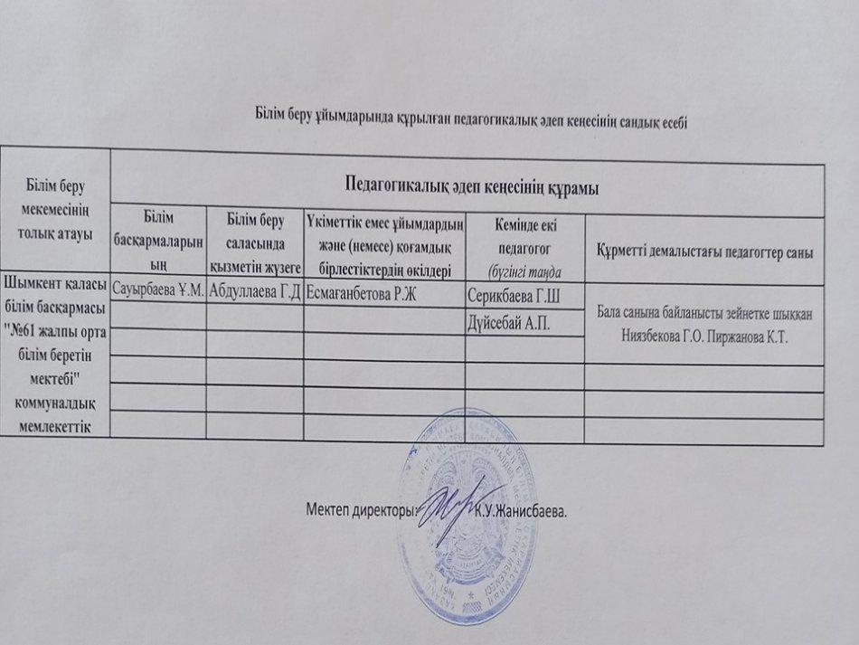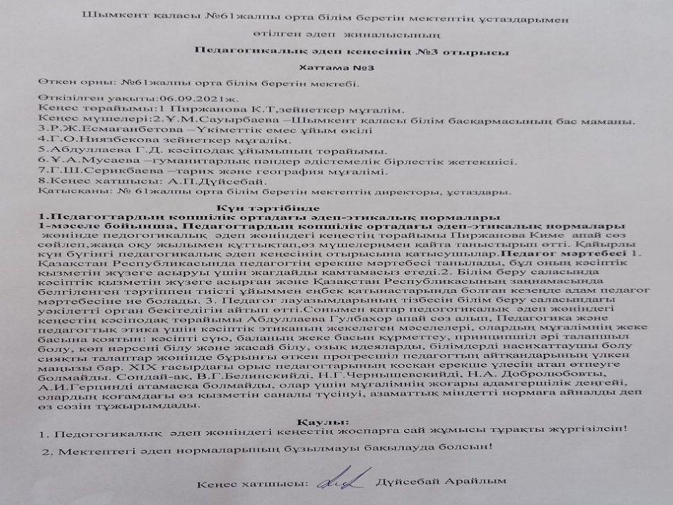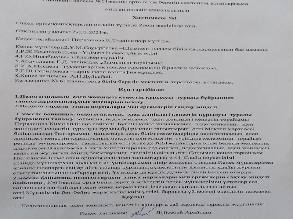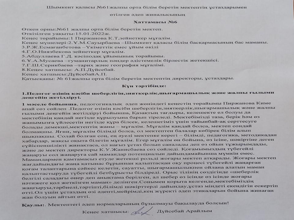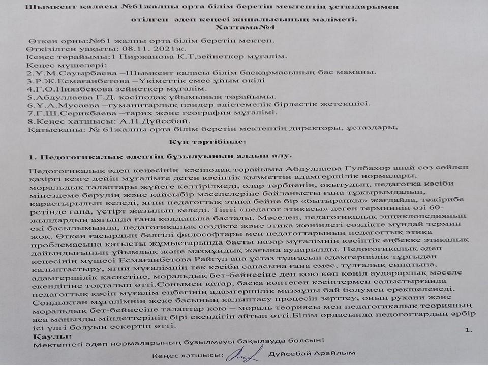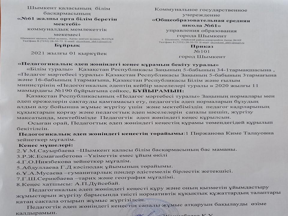 Әдеп кеңесі » «N61 жалпы орта білім беретін мектеп» КММ