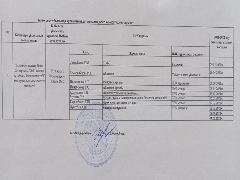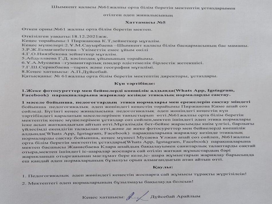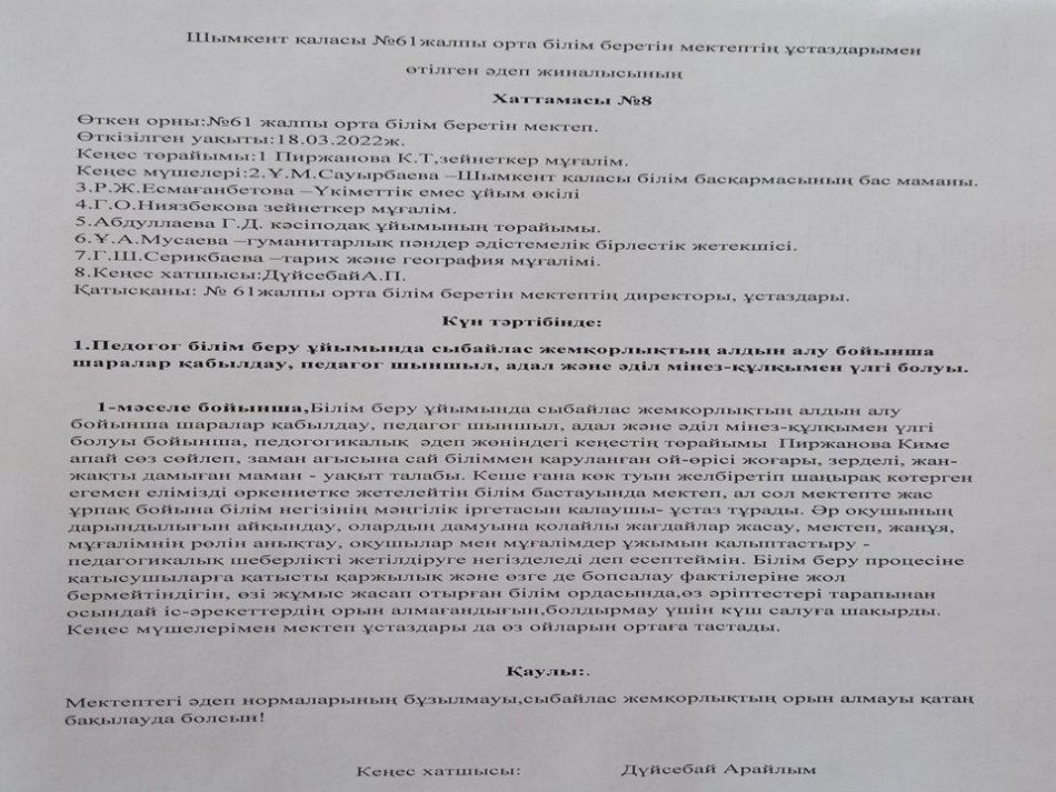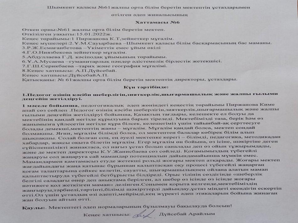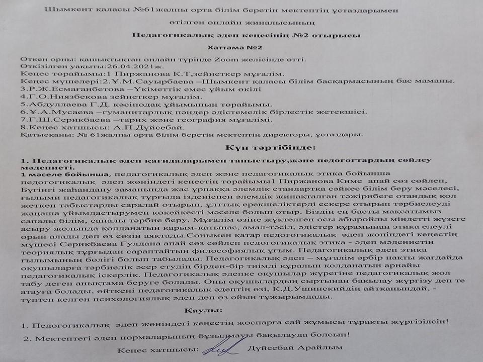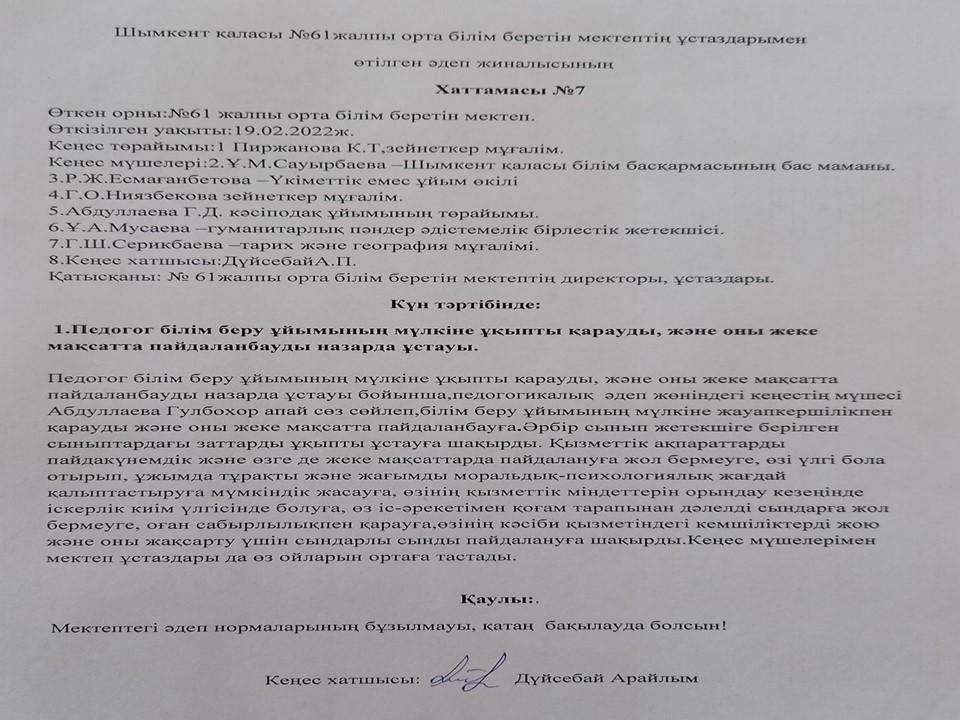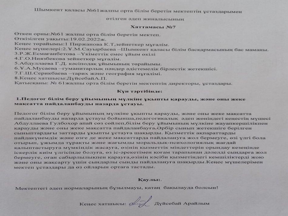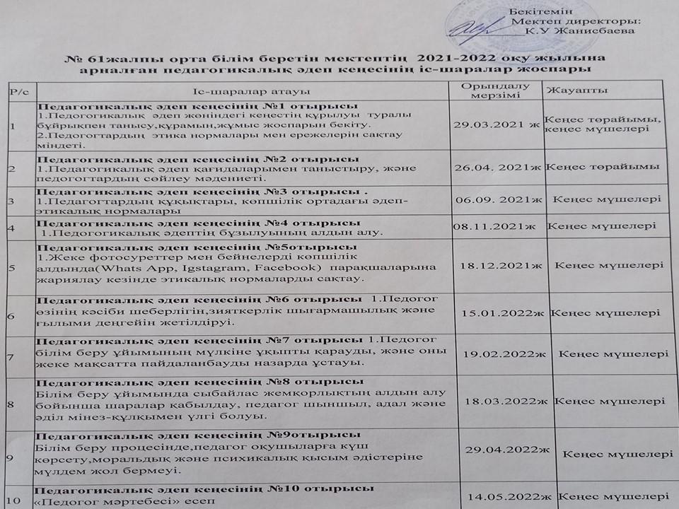 Әдеп кеңесі » «N61 жалпы орта білім беретін мектеп» КММ