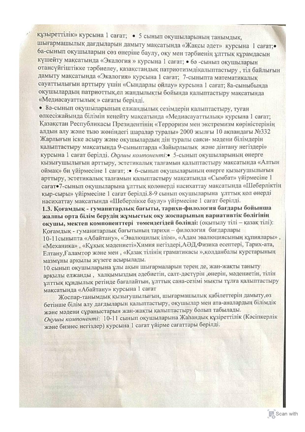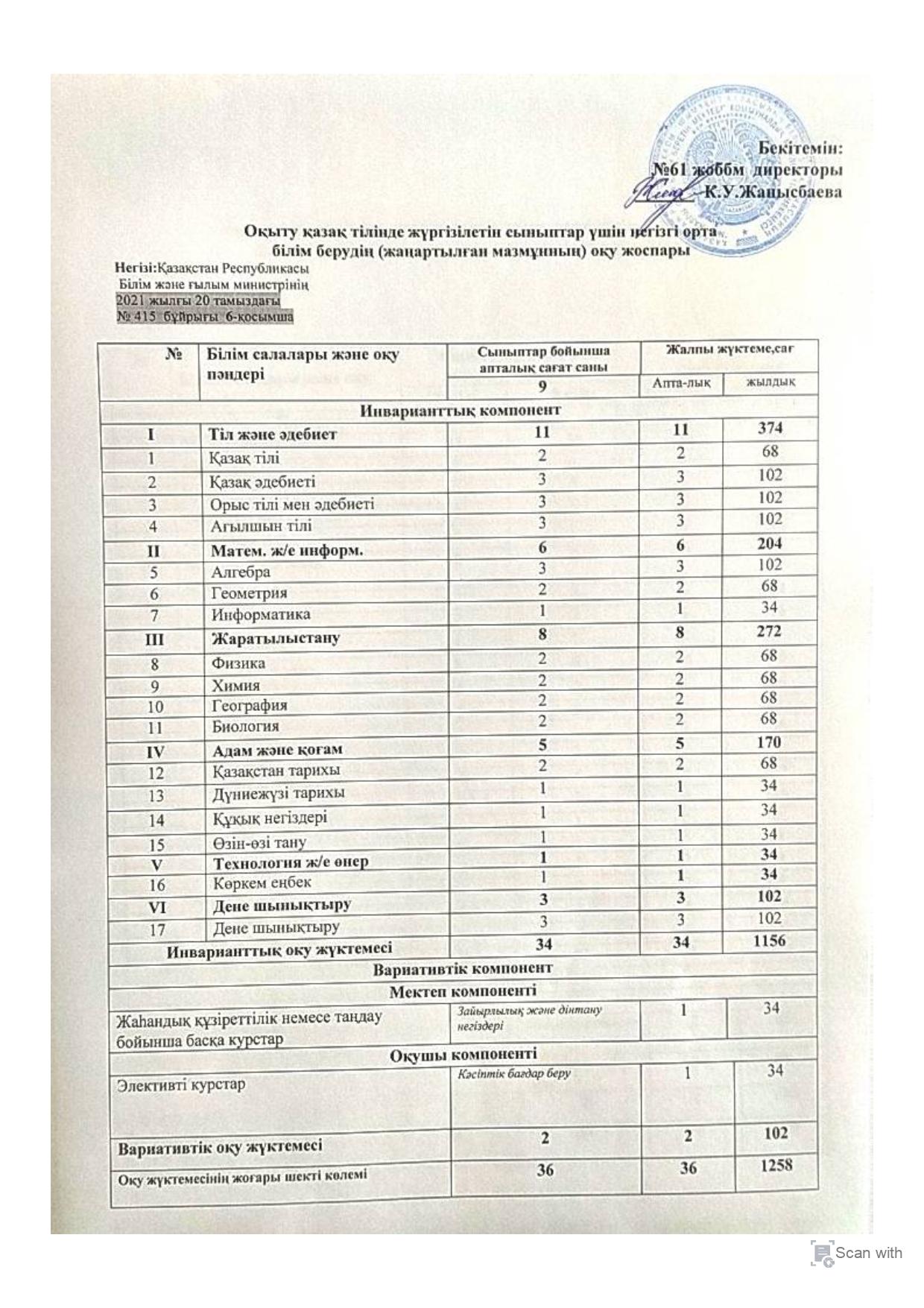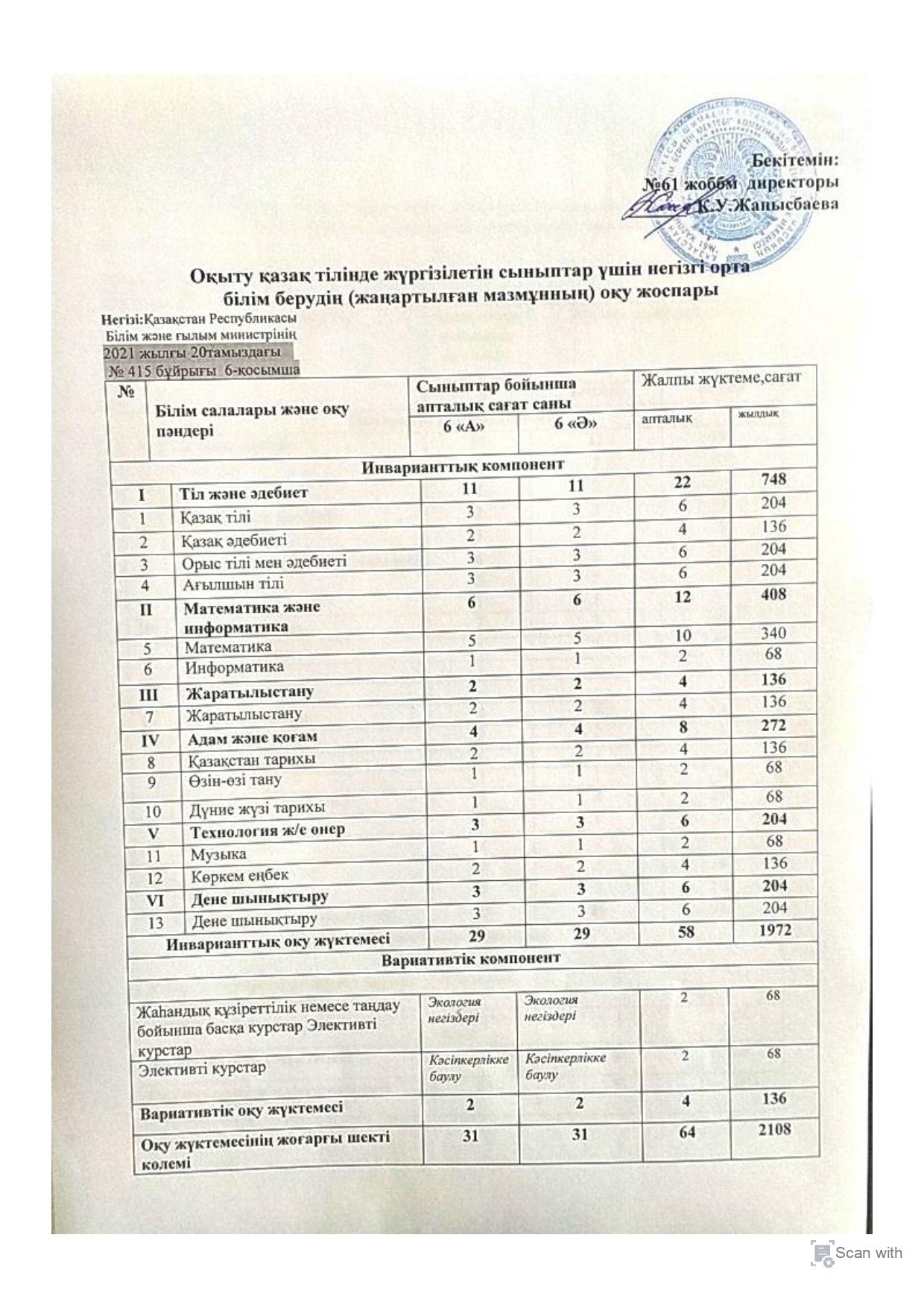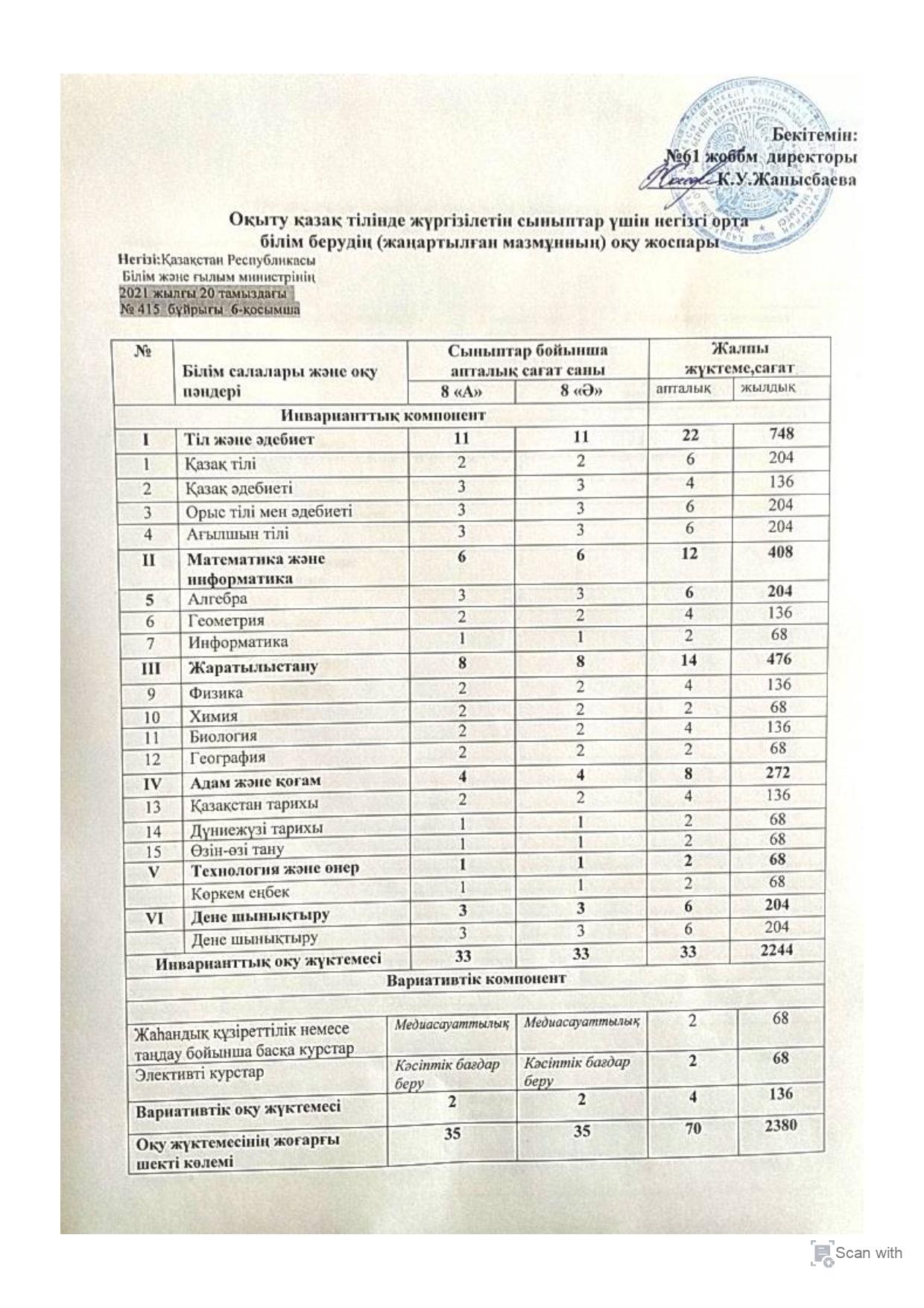 оқу жоспар 2021-2022 » «N61 жалпы орта білім беретін мектеп» КММ