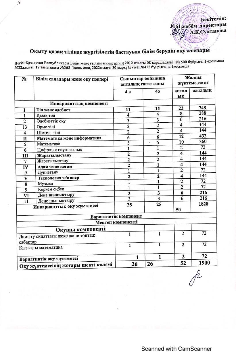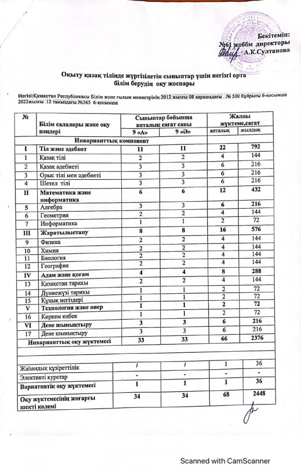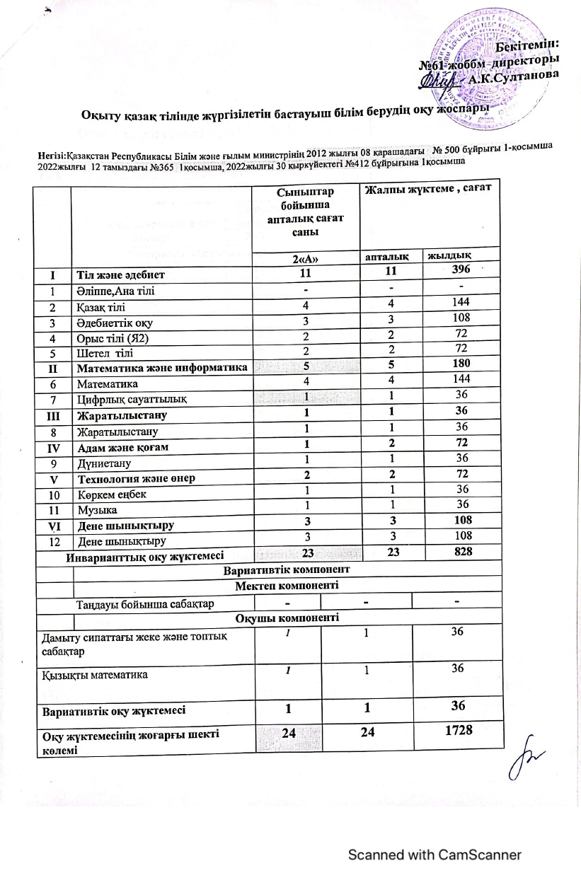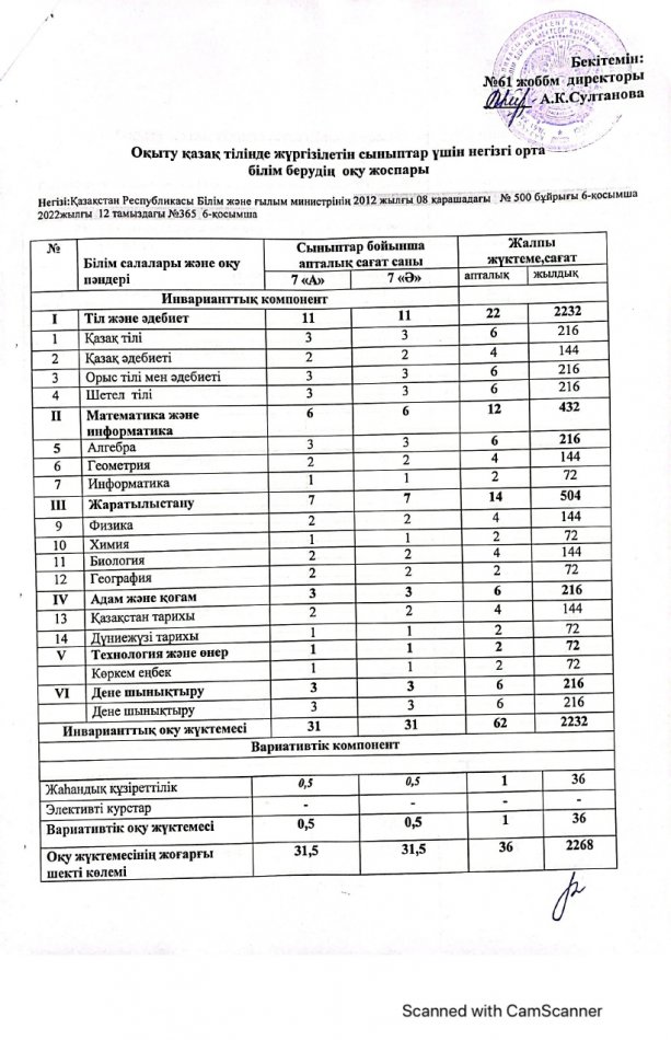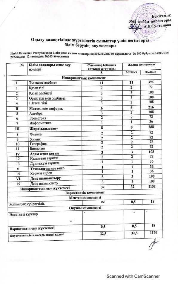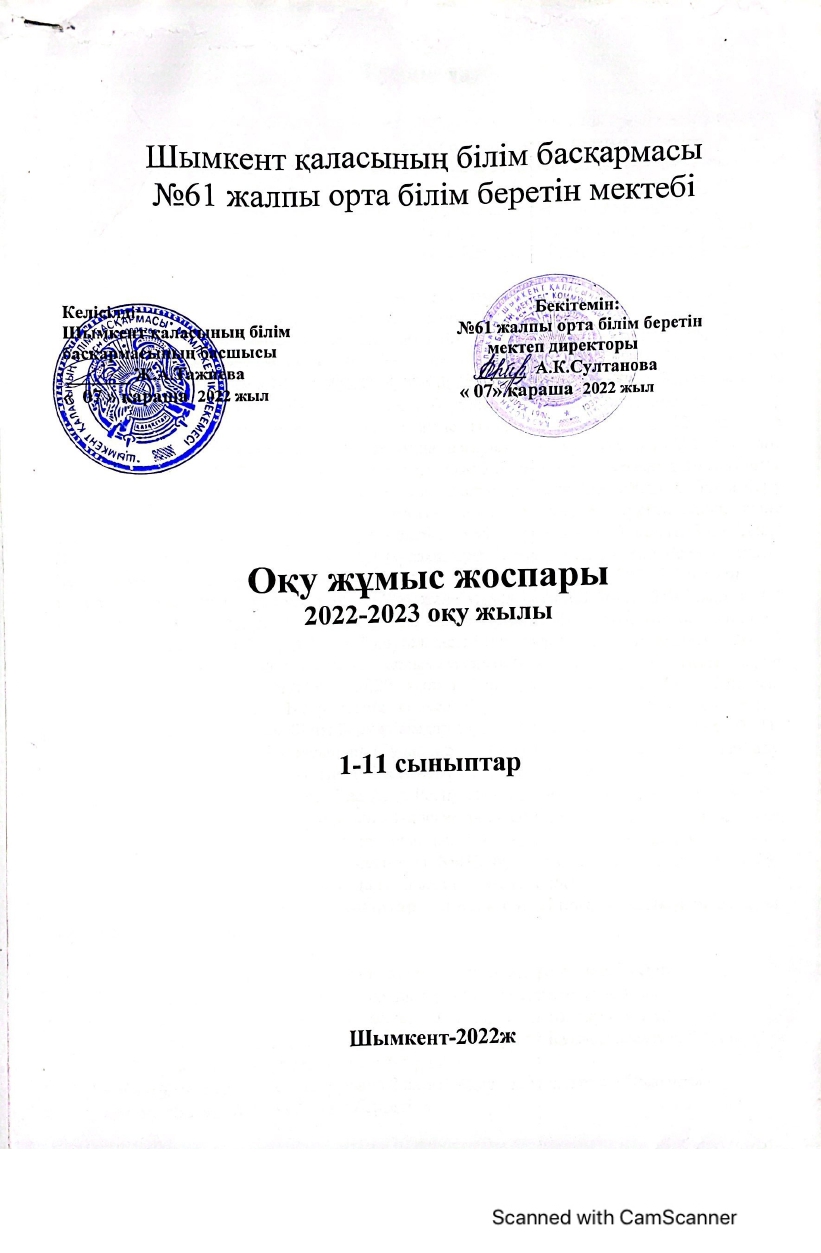 Оқу жұмыс жоспары 2022-2023 оқу жылы » «N61 жалпы орта білім беретін мектеп» КММ