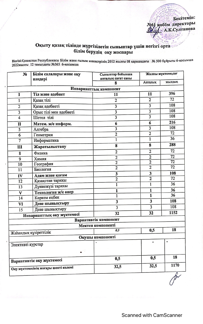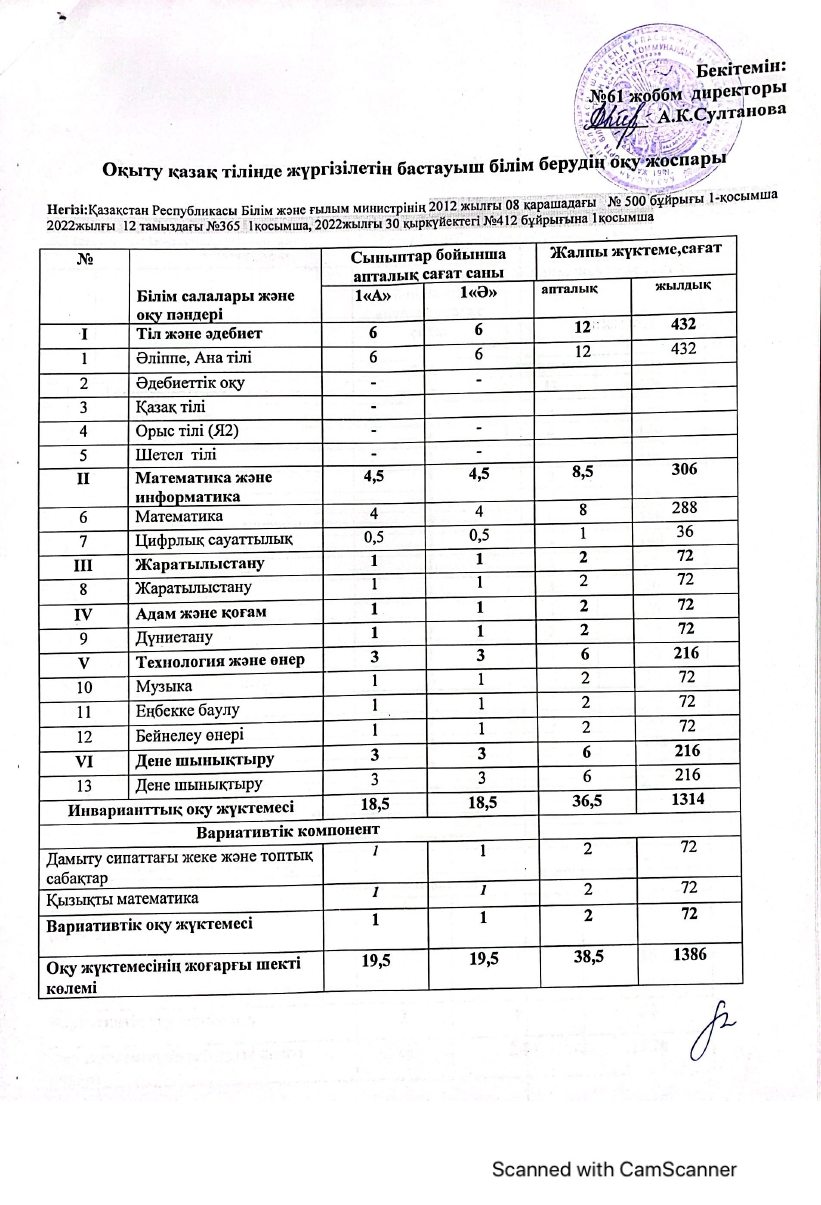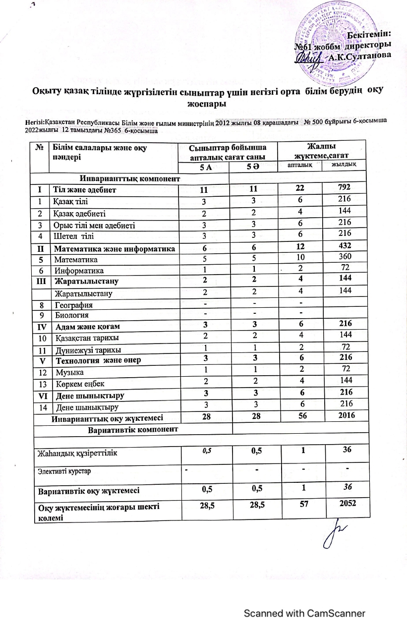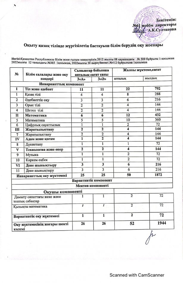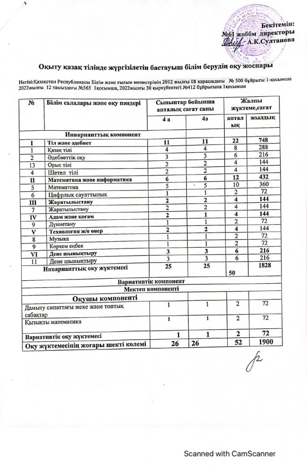 Оқу жұмыс жоспары 2022-2023 оқу жылы » «N61 жалпы орта білім беретін мектеп» КММ