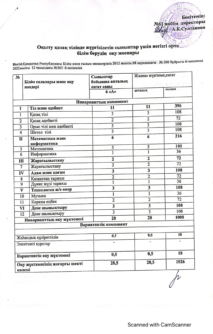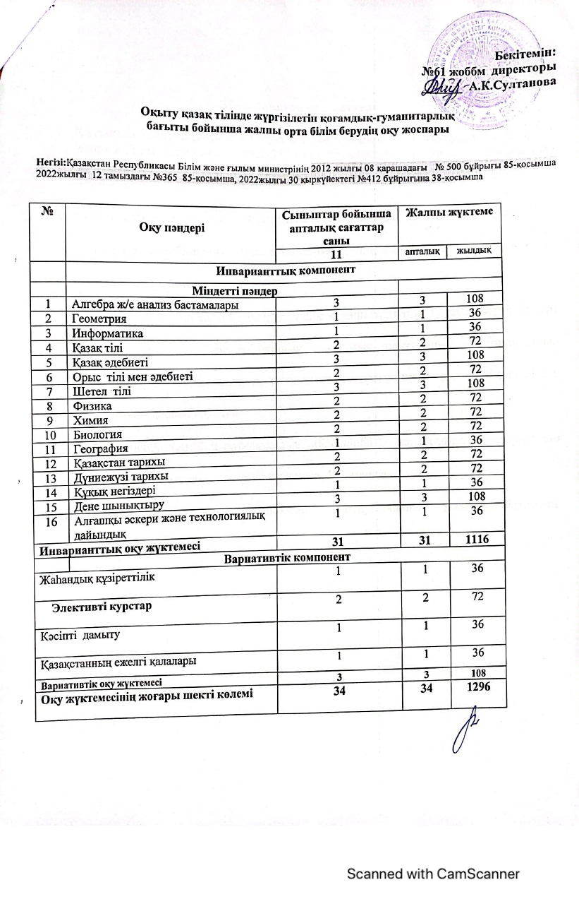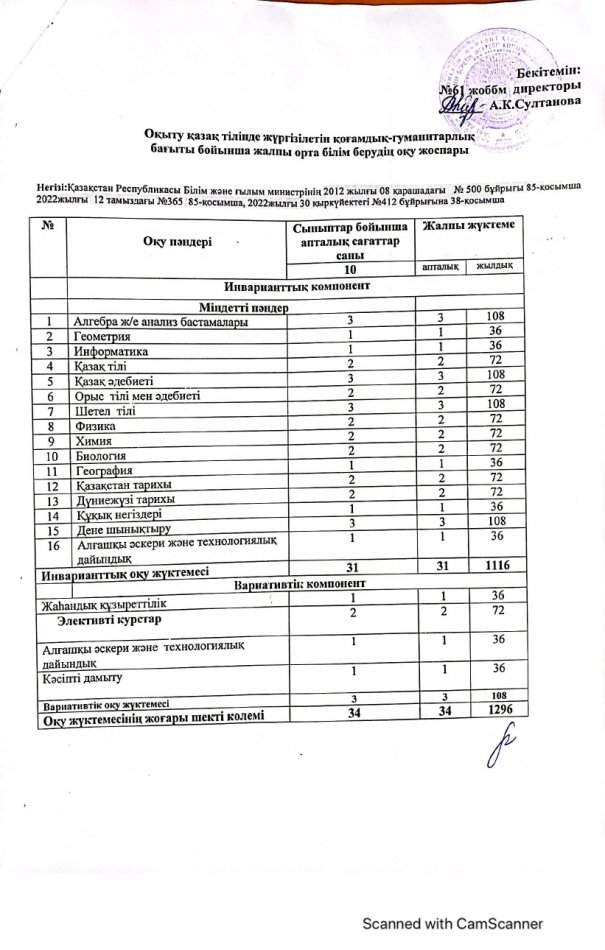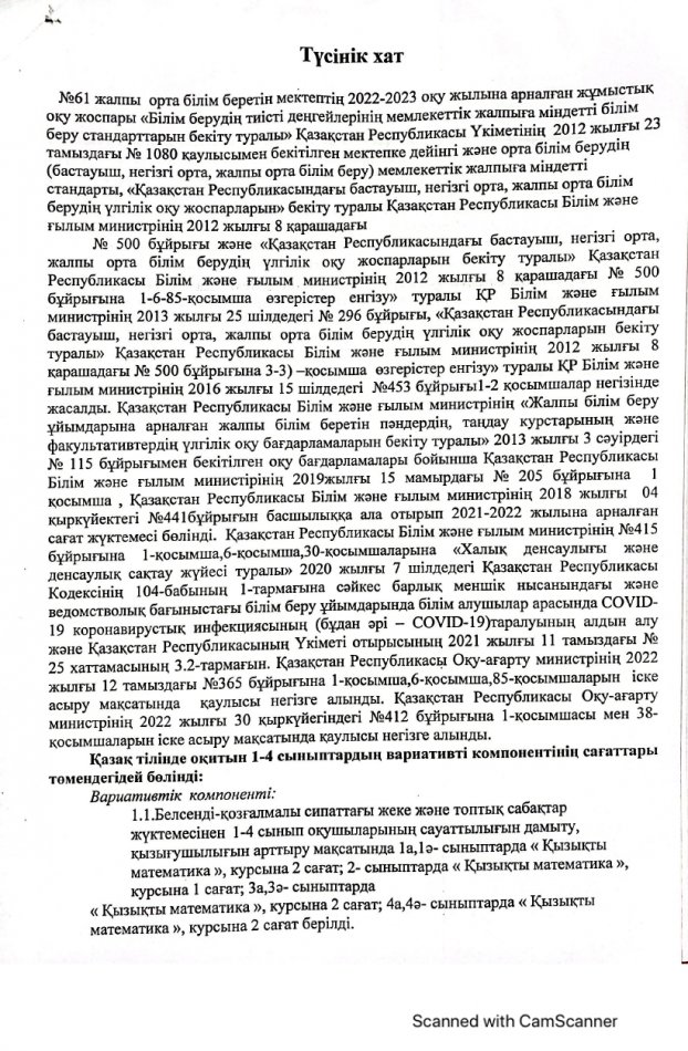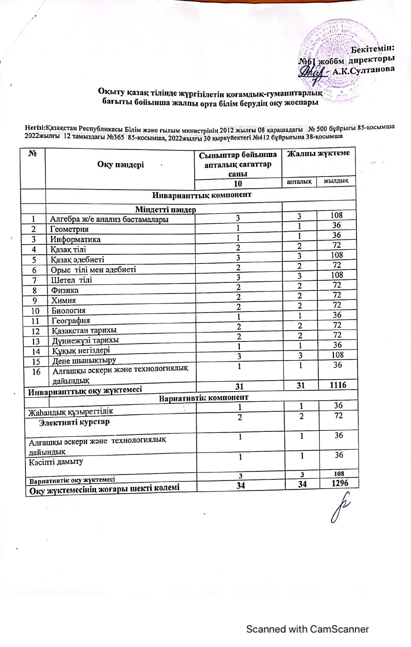 Оқу жұмыс жоспары 2022-2023 оқу жылы » «N61 жалпы орта білім беретін мектеп» КММ