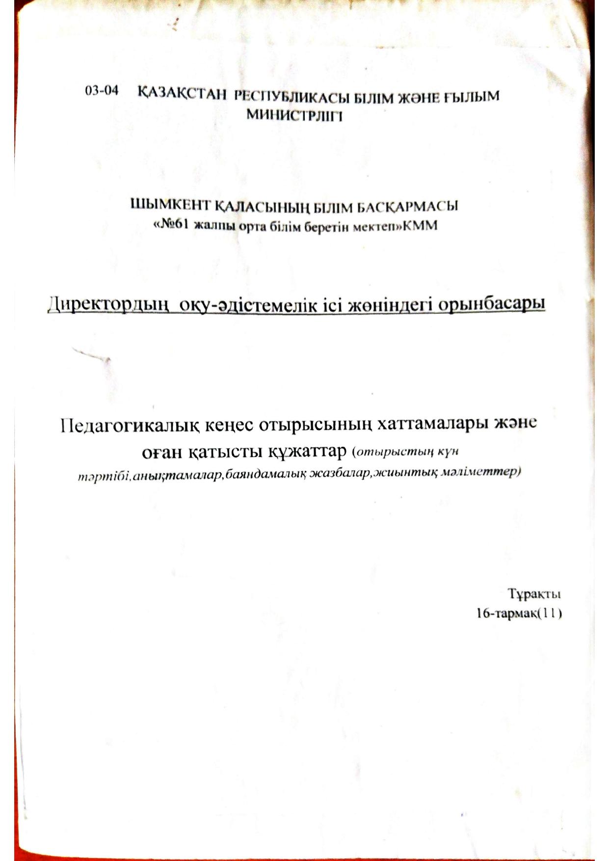 Педагогикалық кеңесі- Бұйрықтар мен Хаттамалар » «N61 жалпы орта білім беретін мектеп» КММ