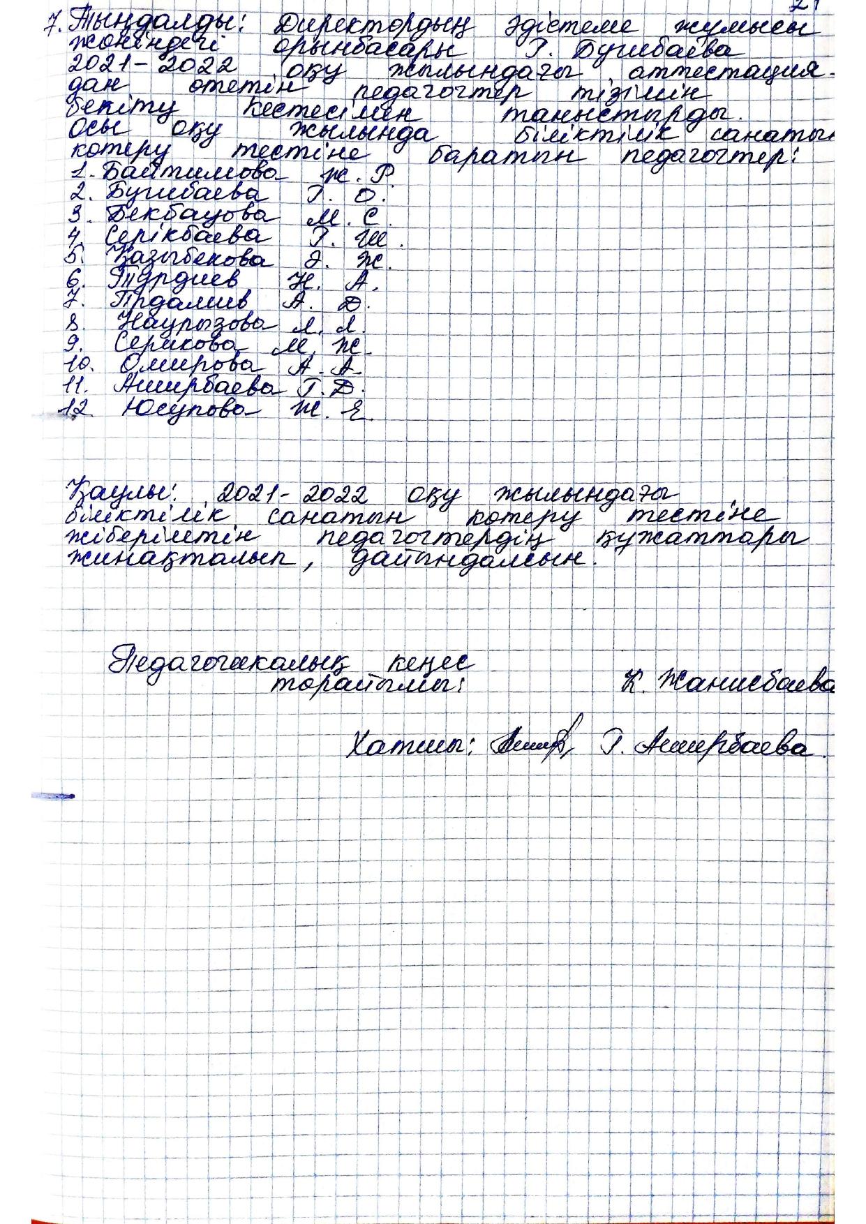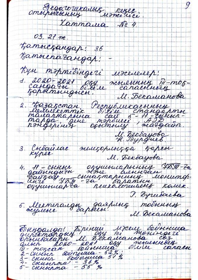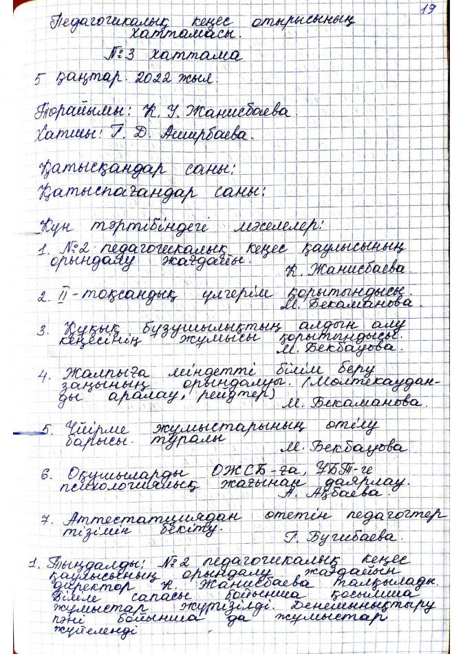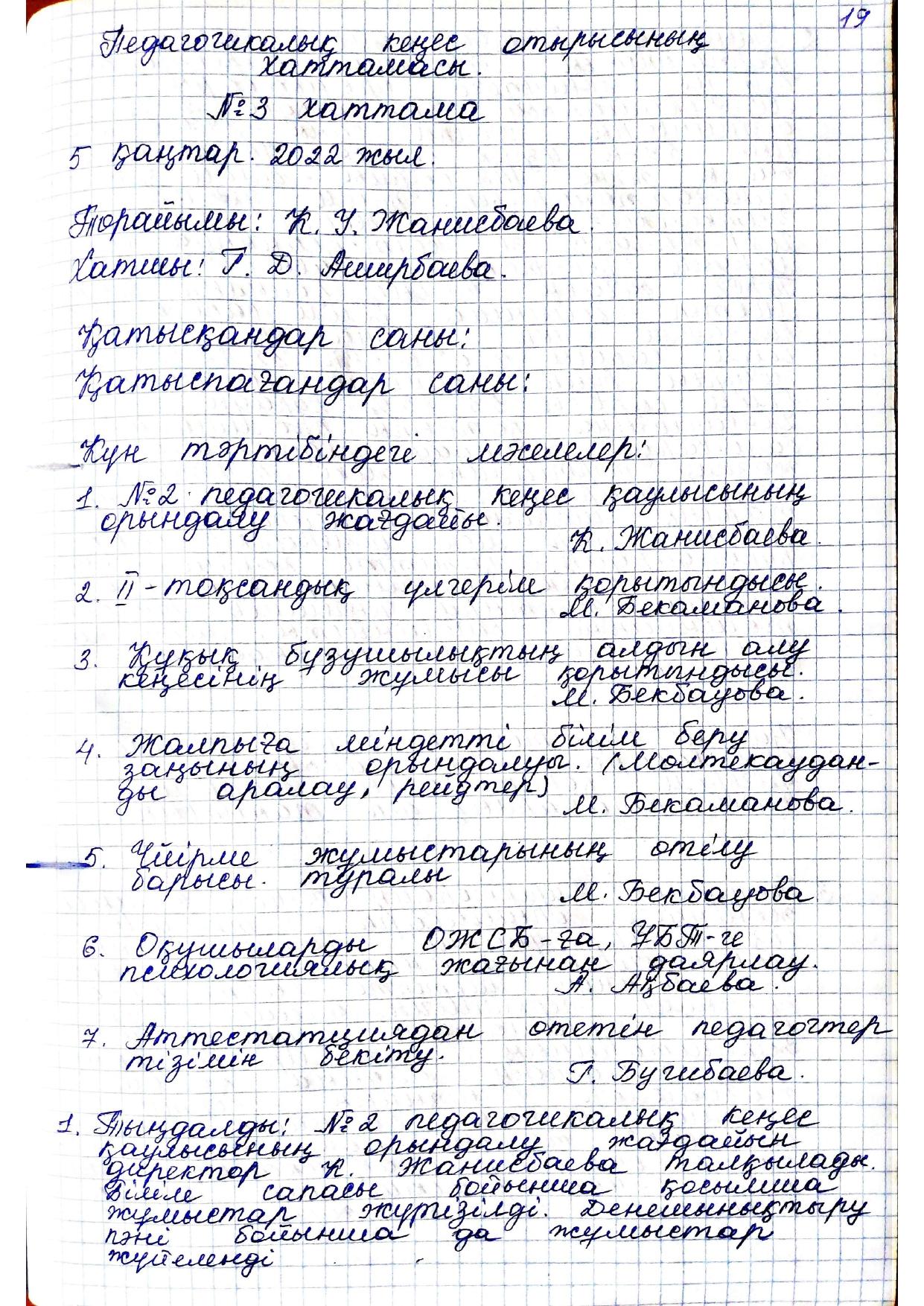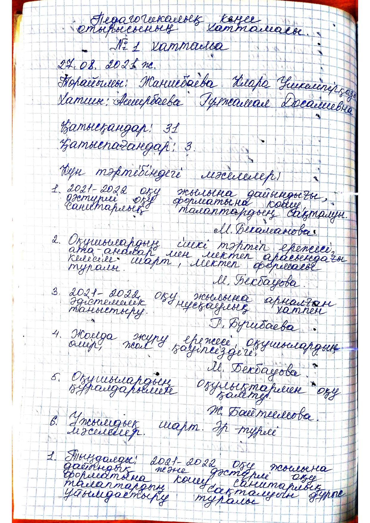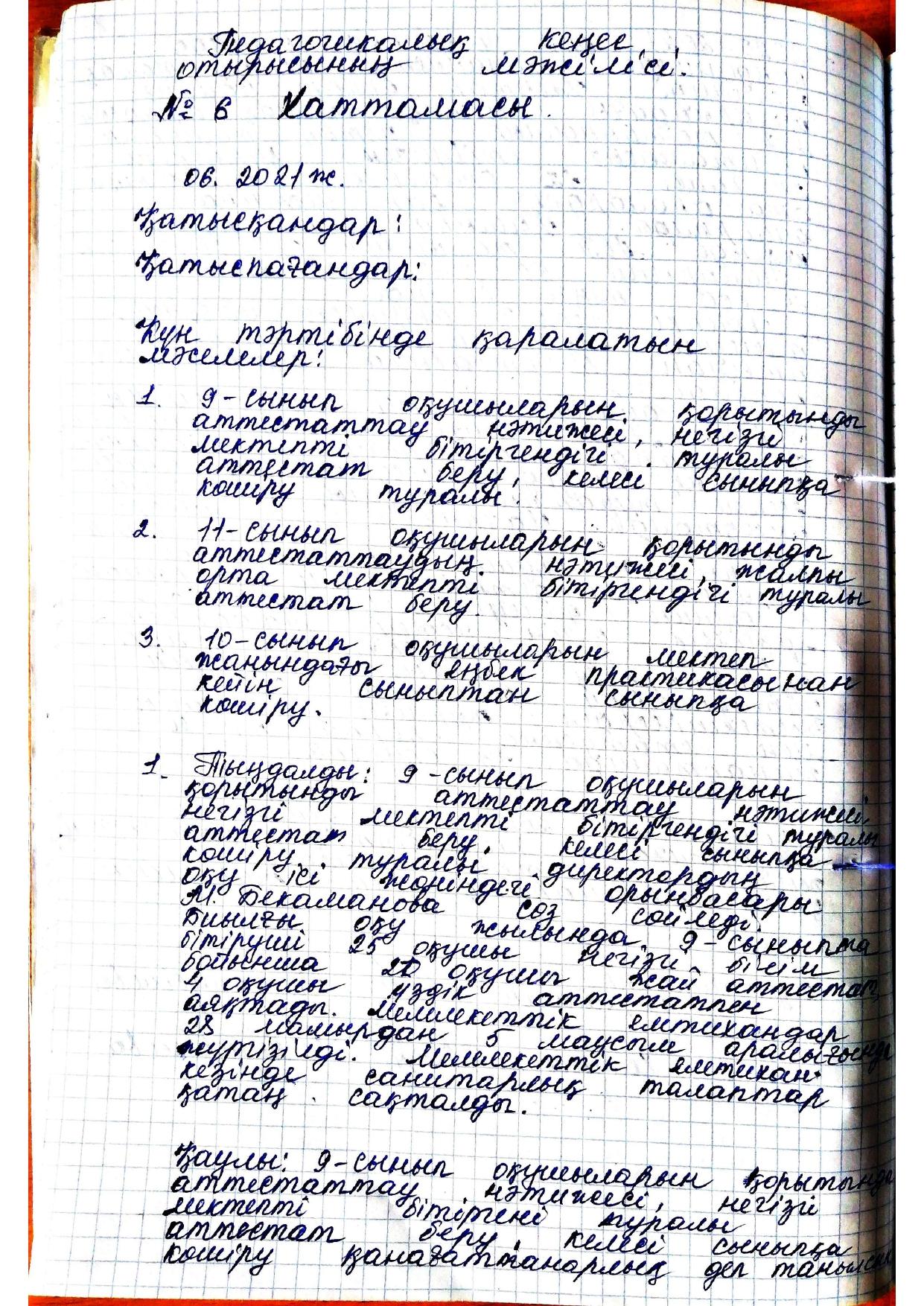 Педагогикалық кеңесі- Бұйрықтар мен Хаттамалар