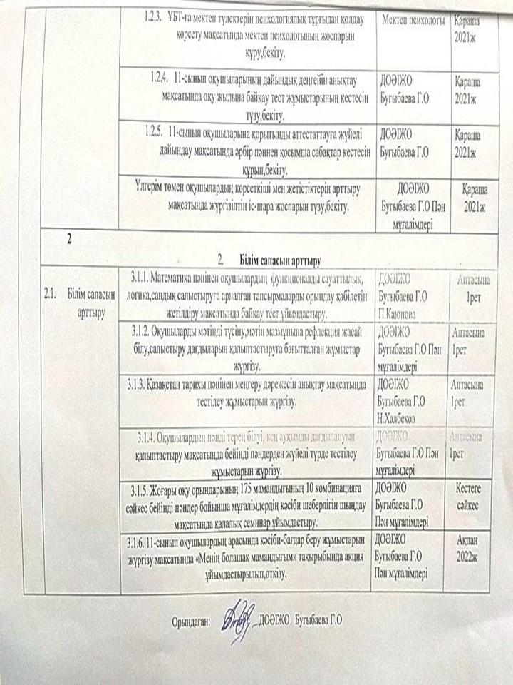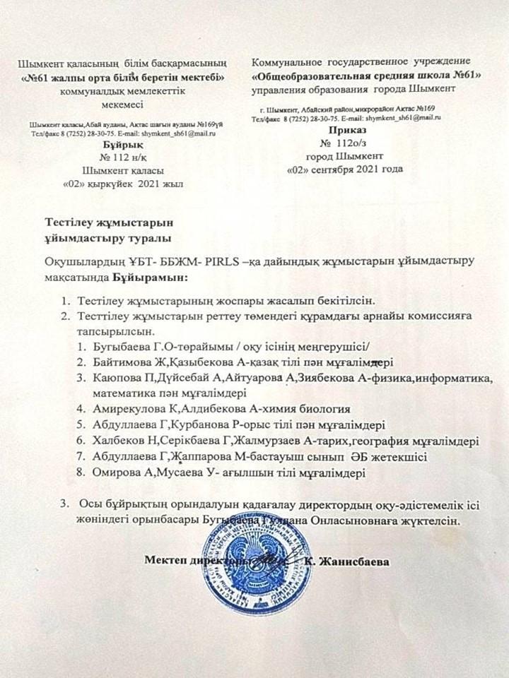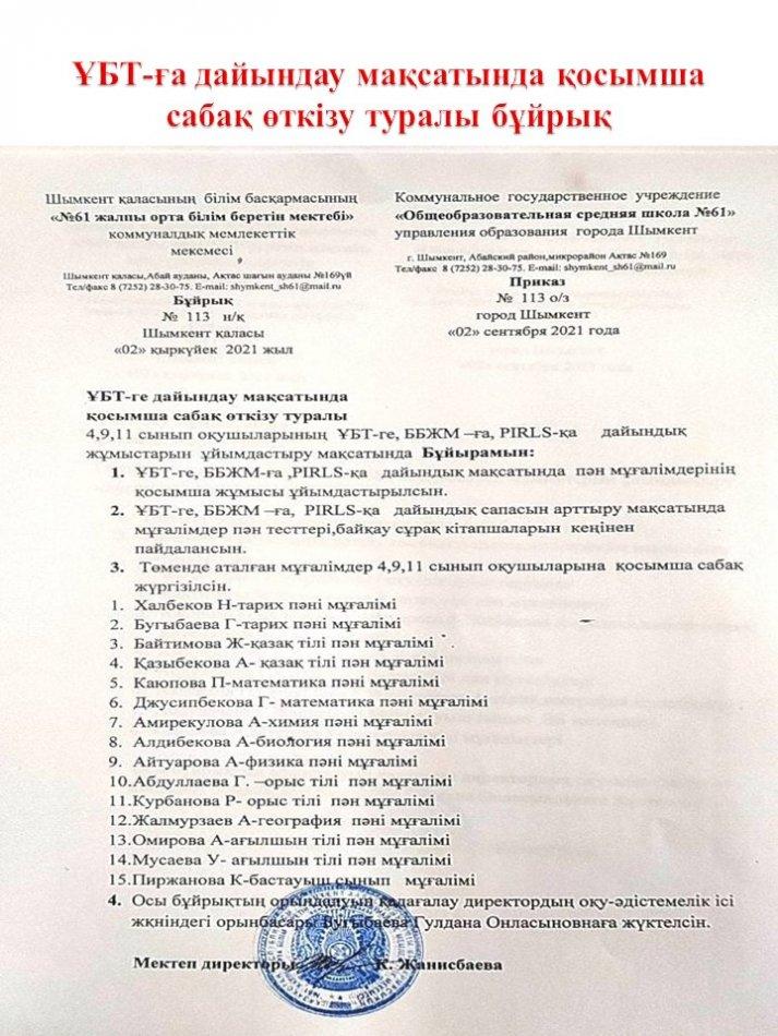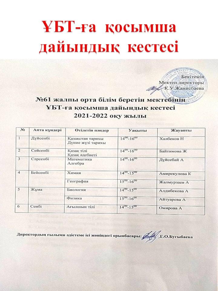 ҰБТ-ға дайындық 2021-2022 оқу жылы » «N61 жалпы орта білім беретін мектеп» КММ