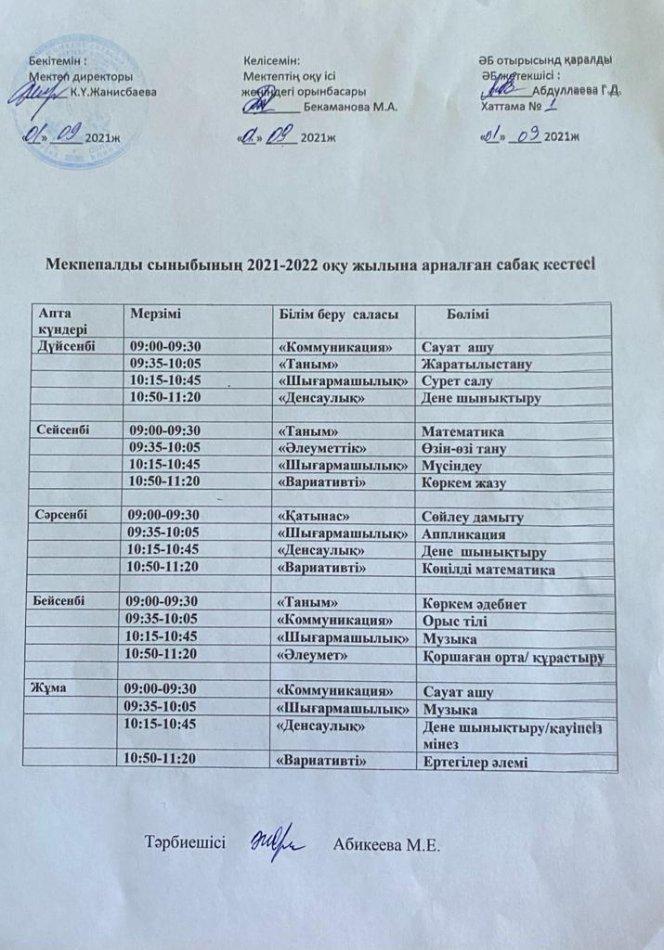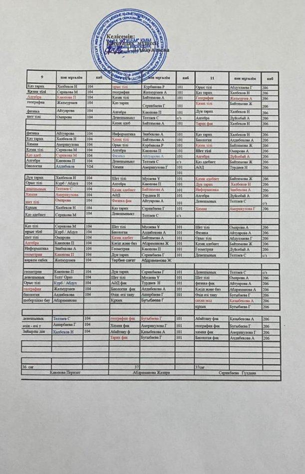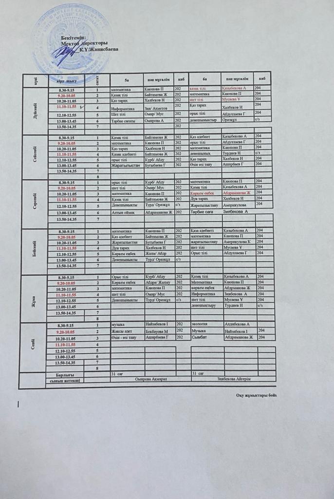 АТА-АНАЛАР НАЗАРЫНА! Сабақ кестесі