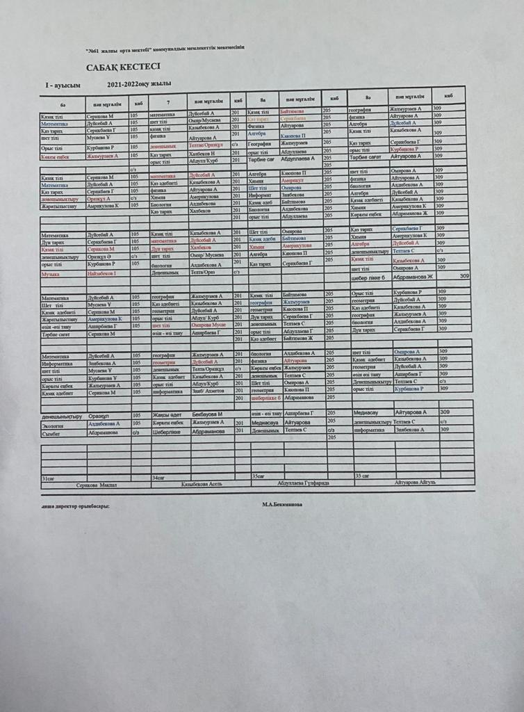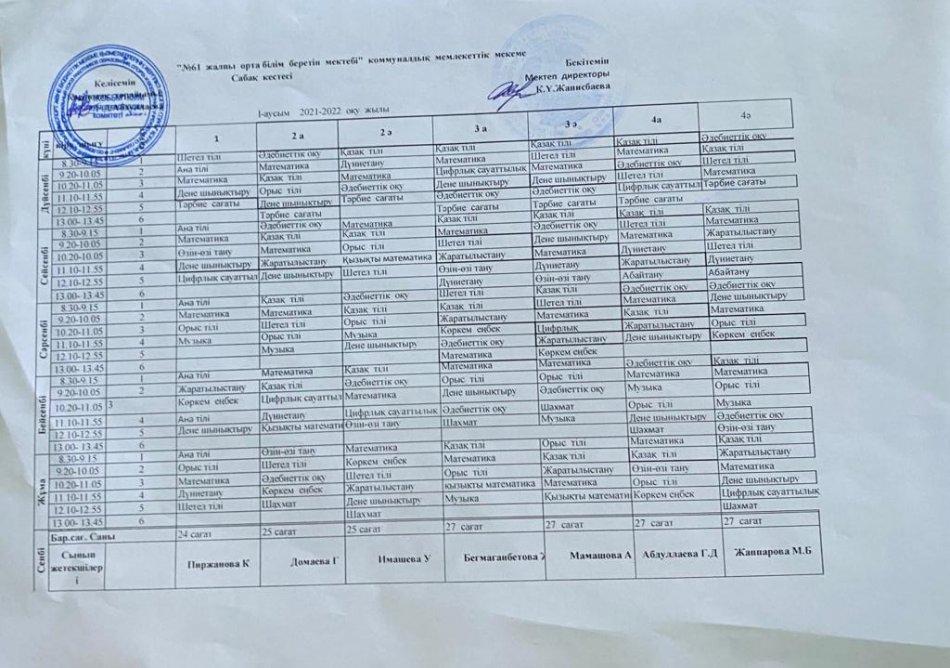 АТА-АНАЛАР НАЗАРЫНА! Сабақ кестесі » «N61 жалпы орта білім беретін мектеп» КММ