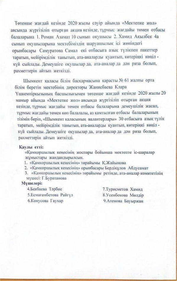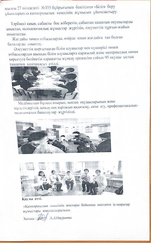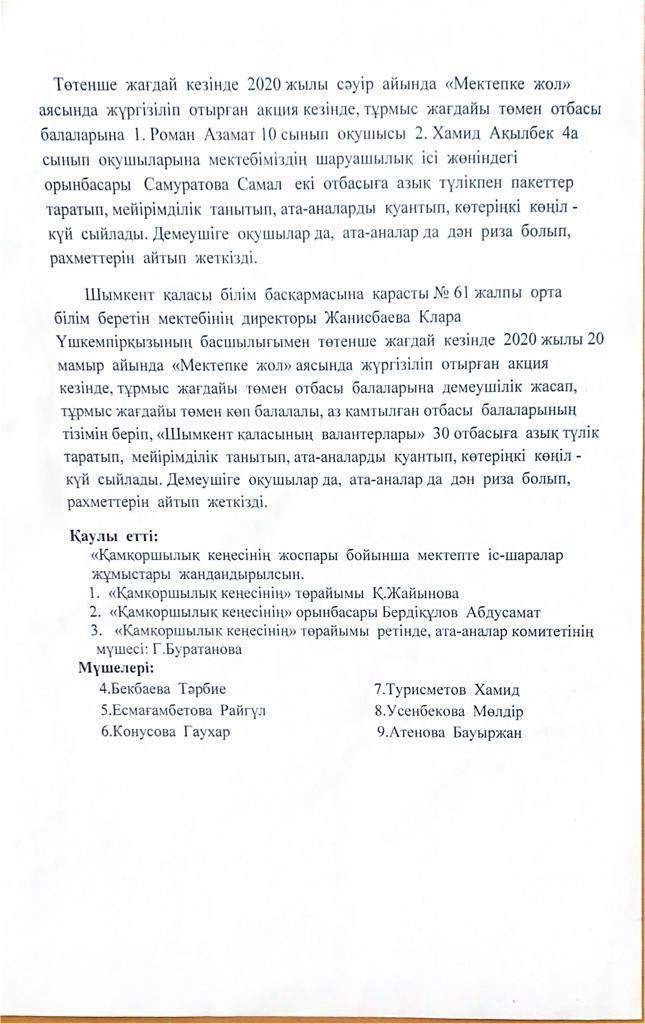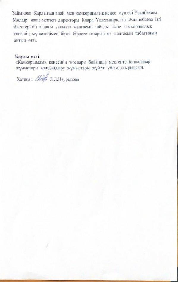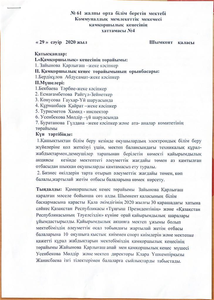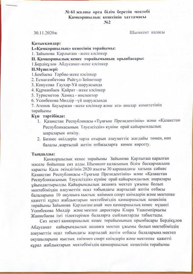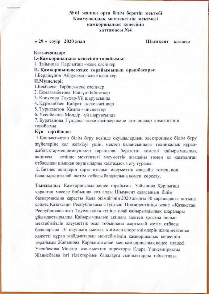 Қамқоршылық кеңесінің хаттамалары » «N61 жалпы орта білім беретін мектеп» КММ