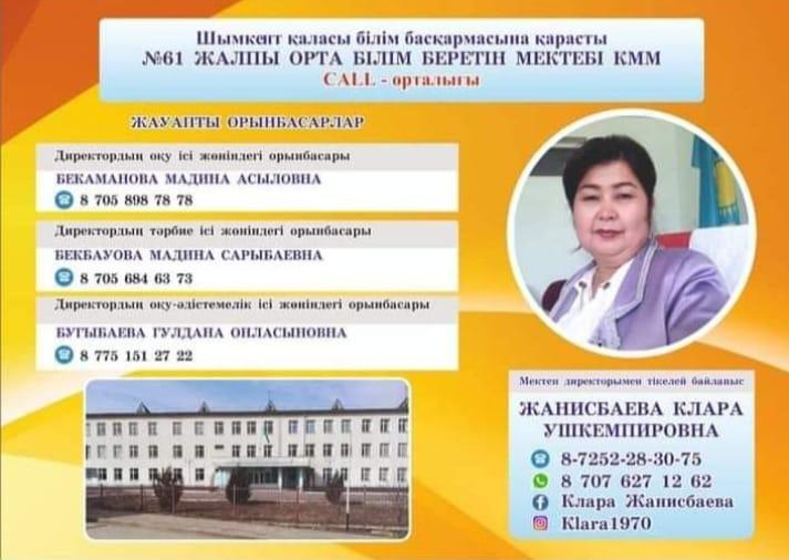 Шымкент қалалық білім басқармасына қарасты №61 жалпы орта білім беретін мектептің