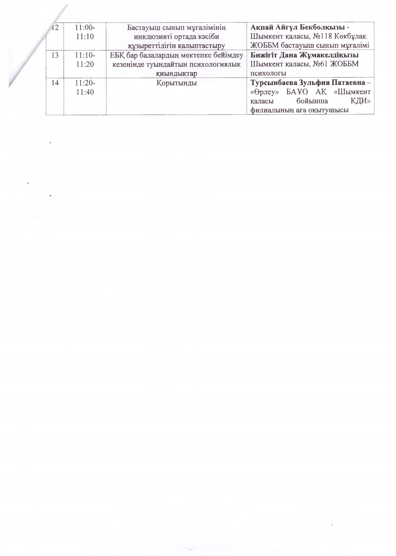 Бағдарлама дөңгелек үстел » «N61 жалпы орта білім беретін мектеп» КММ