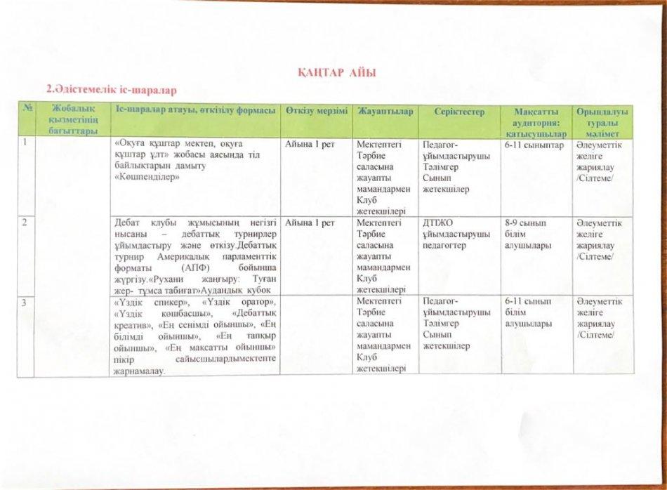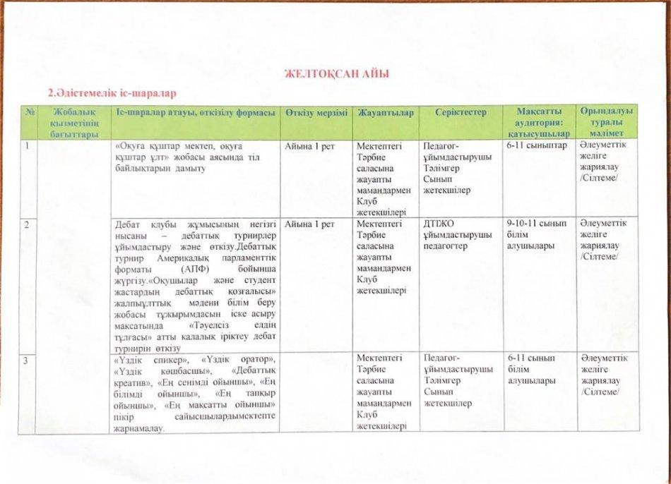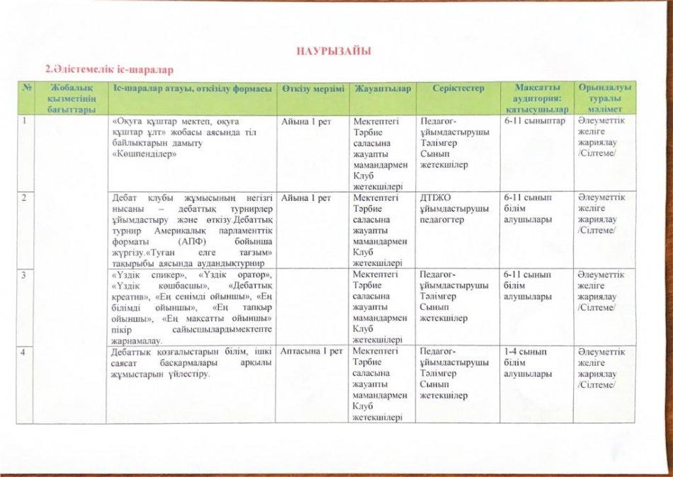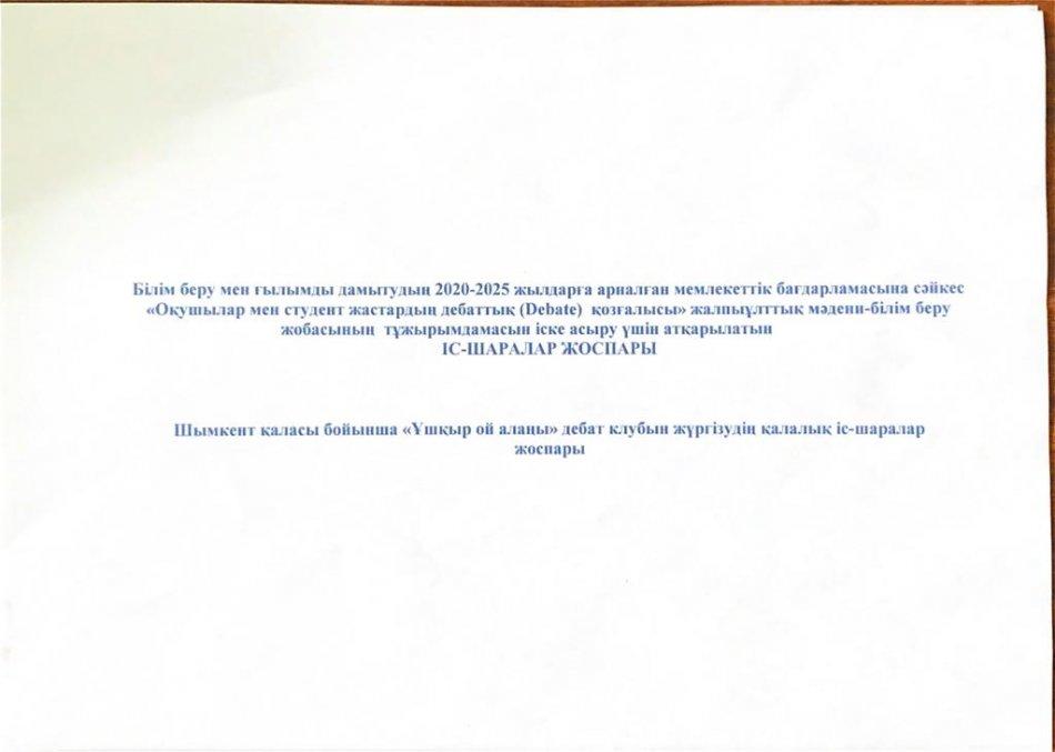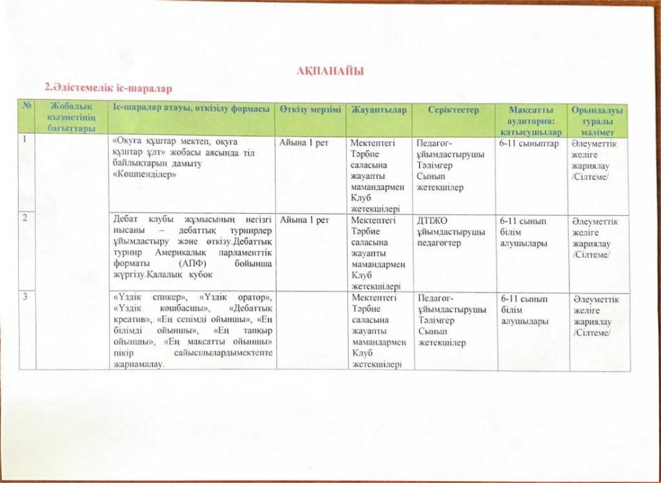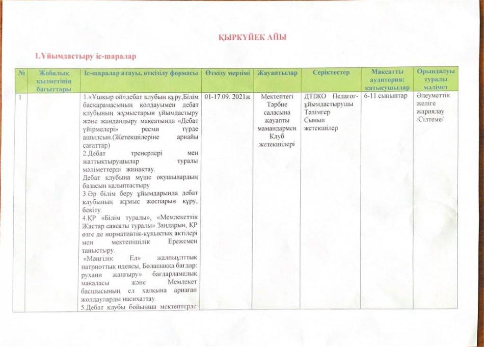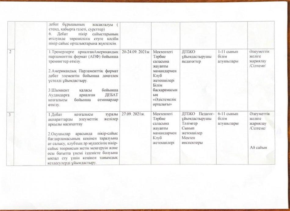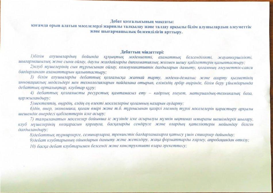 Дебат клубының жоспары » «N61 жалпы орта білім беретін мектеп» КММ