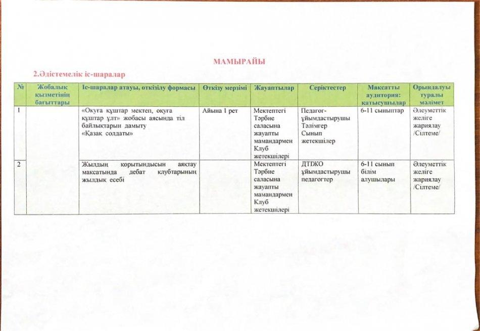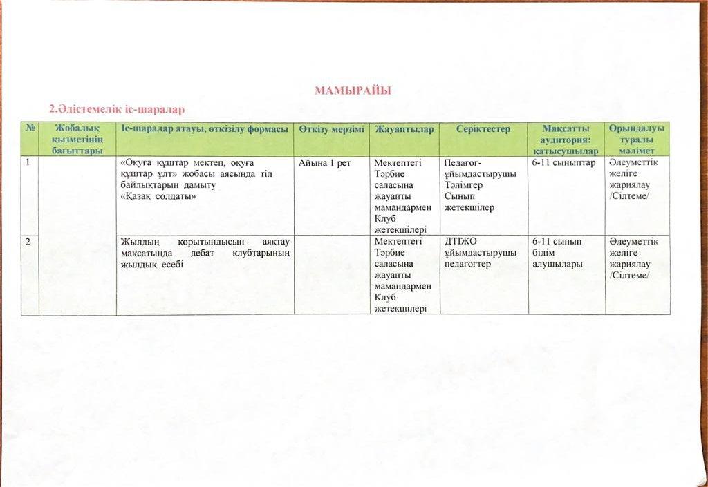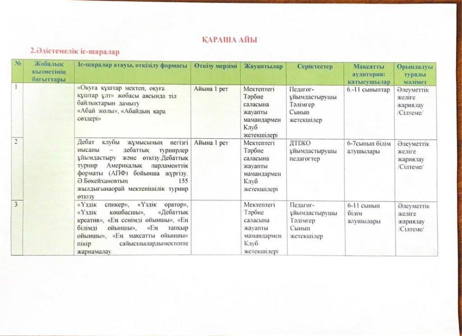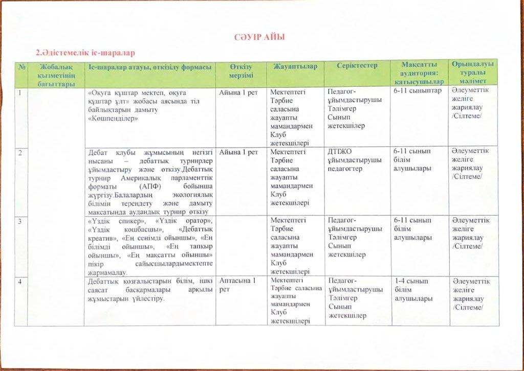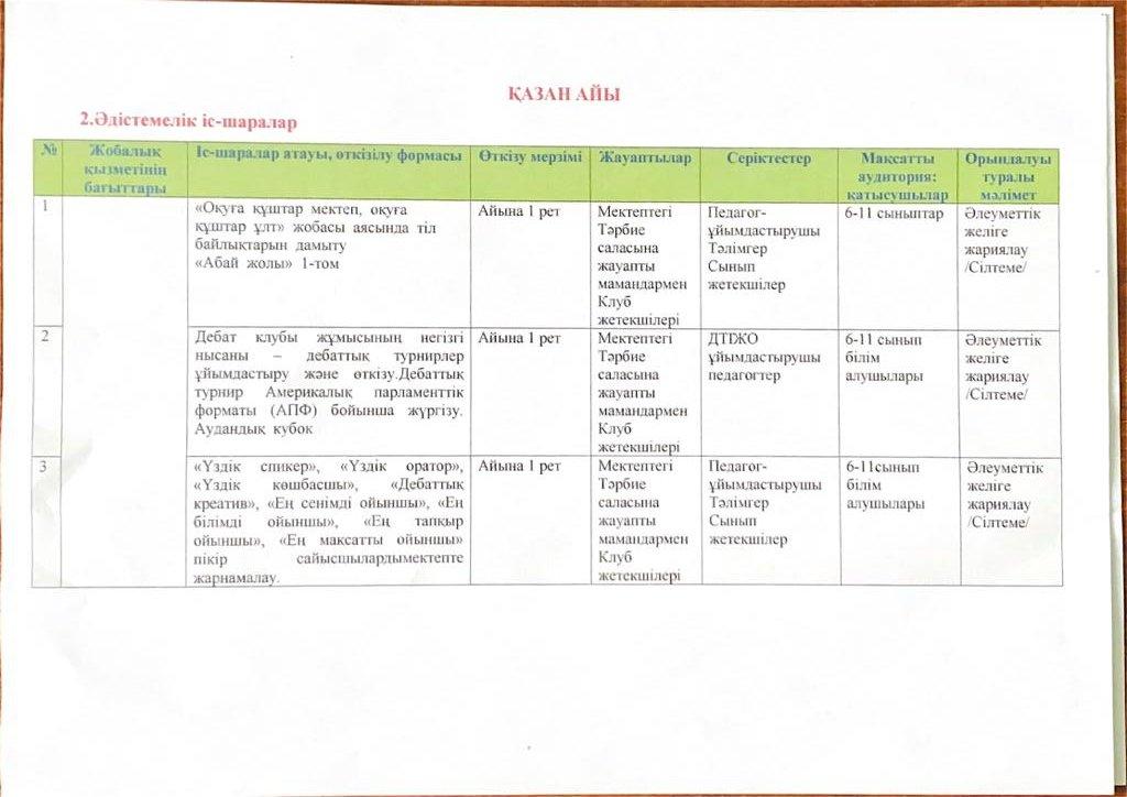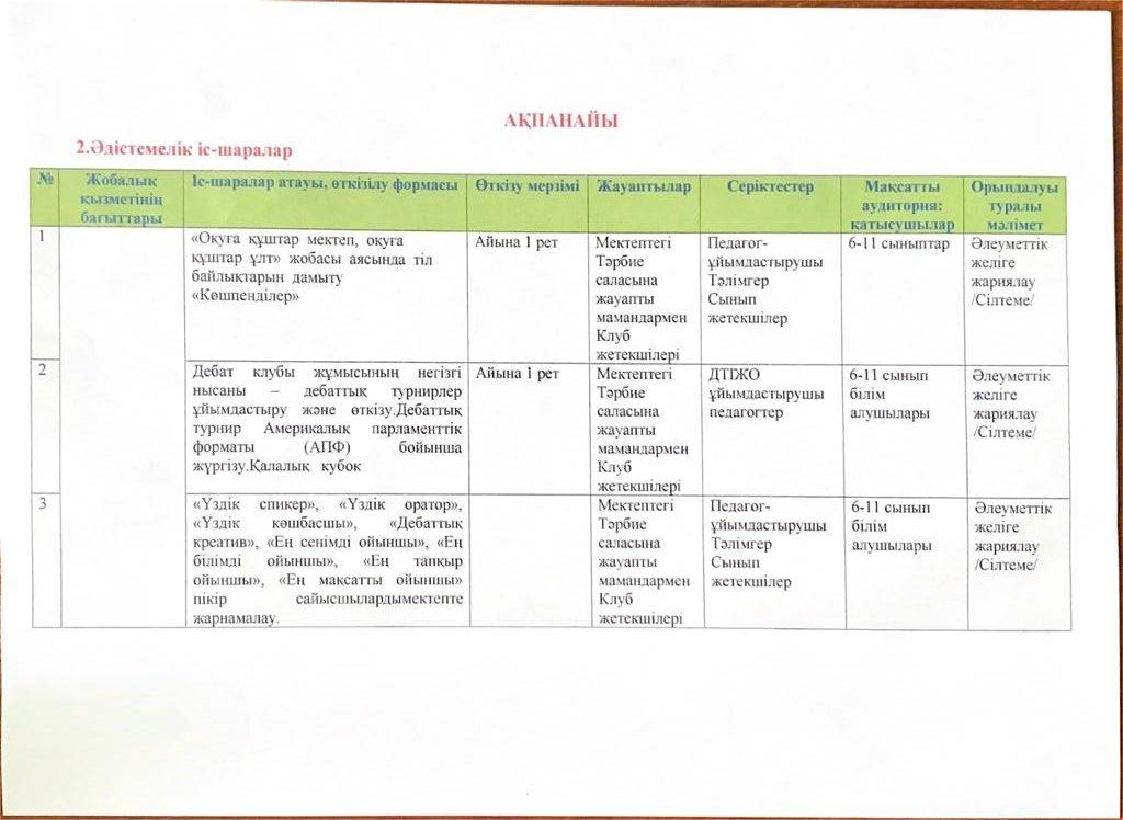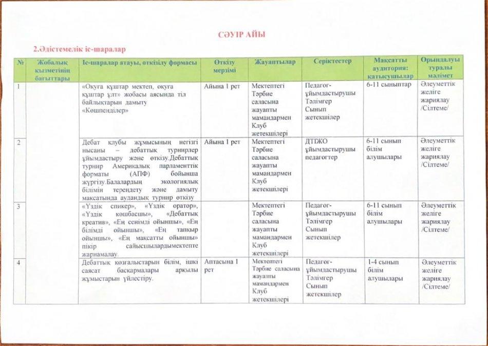 Дебат клубының жоспары » «N61 жалпы орта білім беретін мектеп» КММ