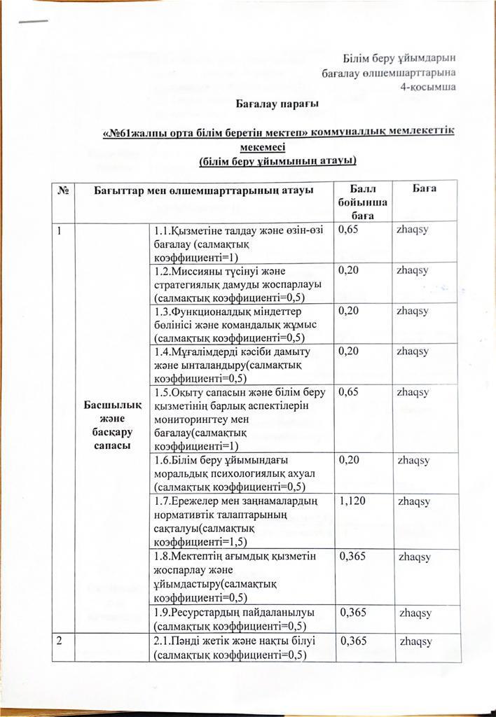 4 қосымша » «N61 жалпы орта білім беретін мектеп» КММ